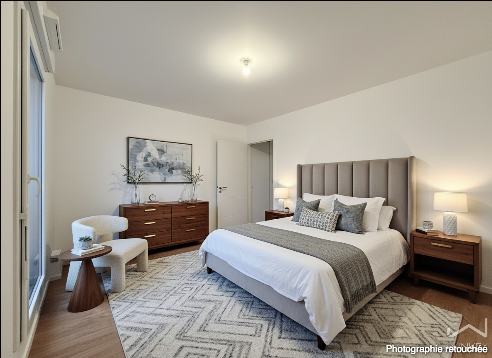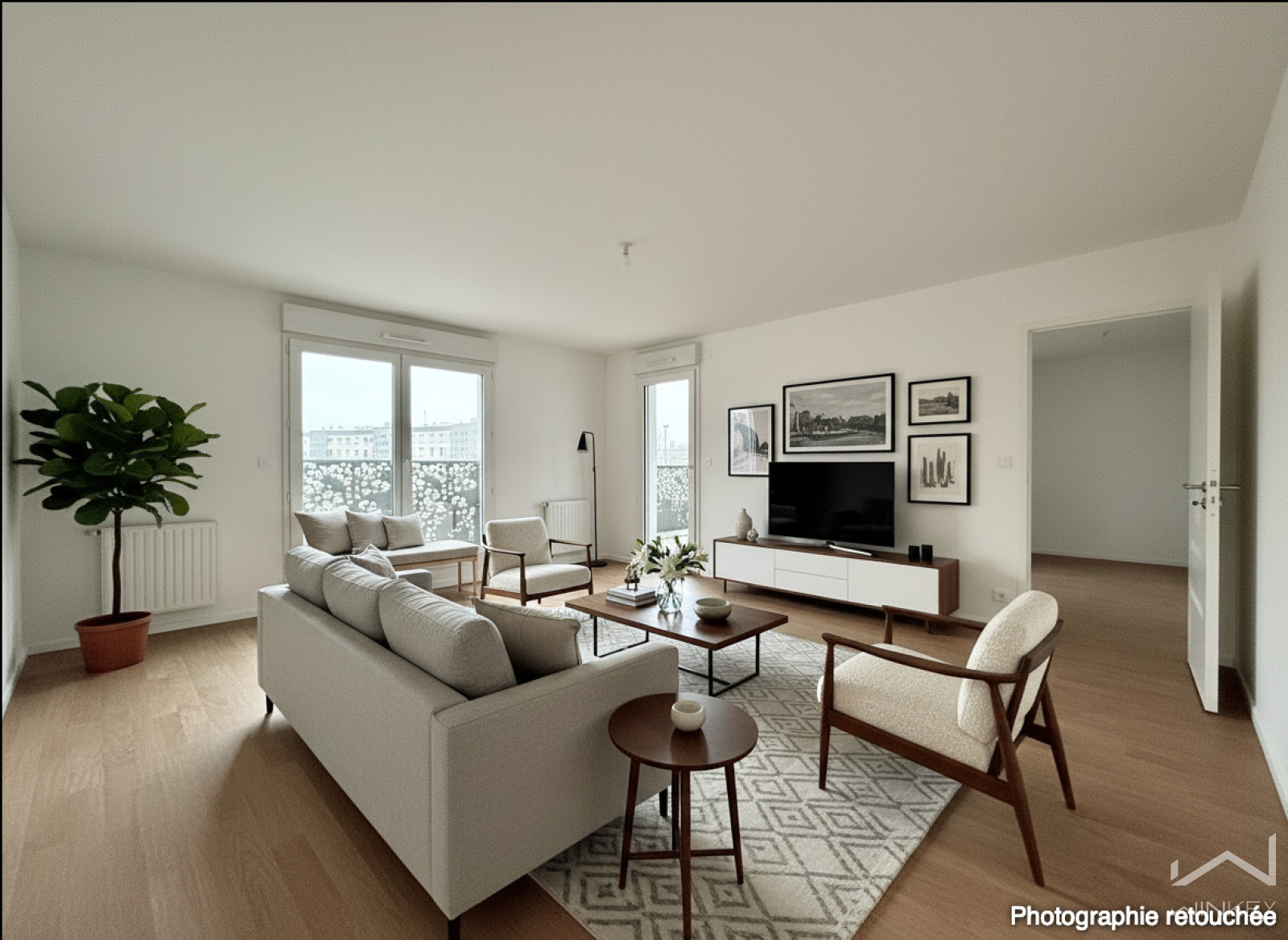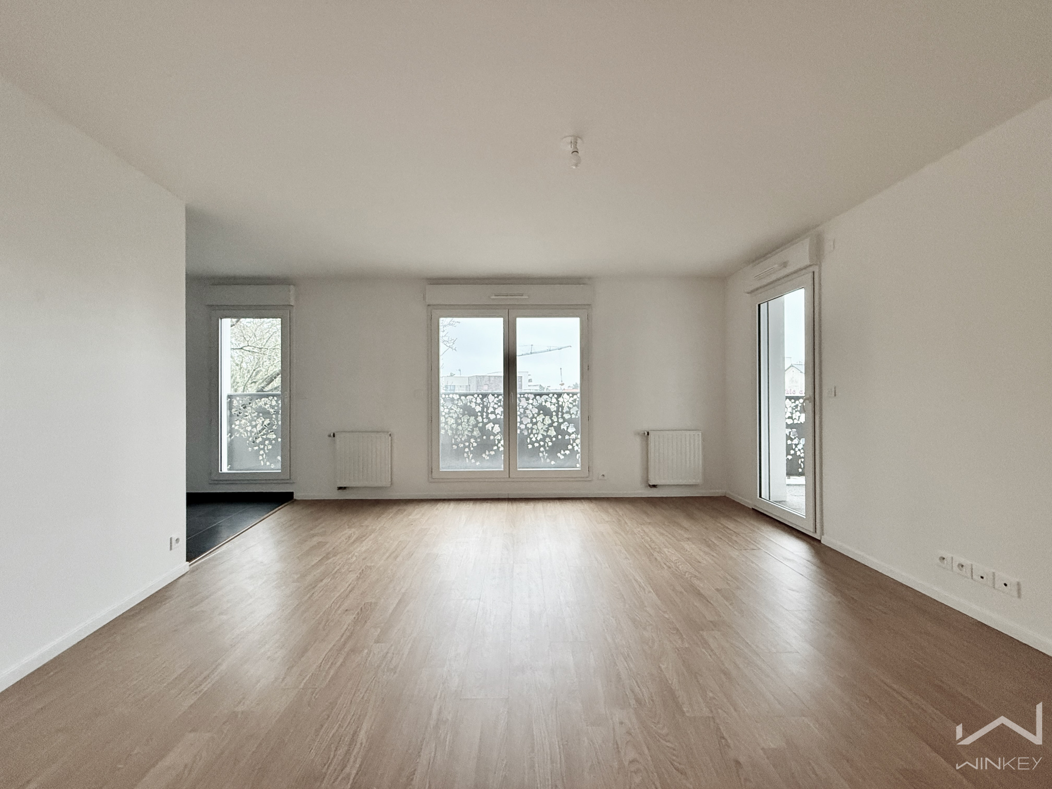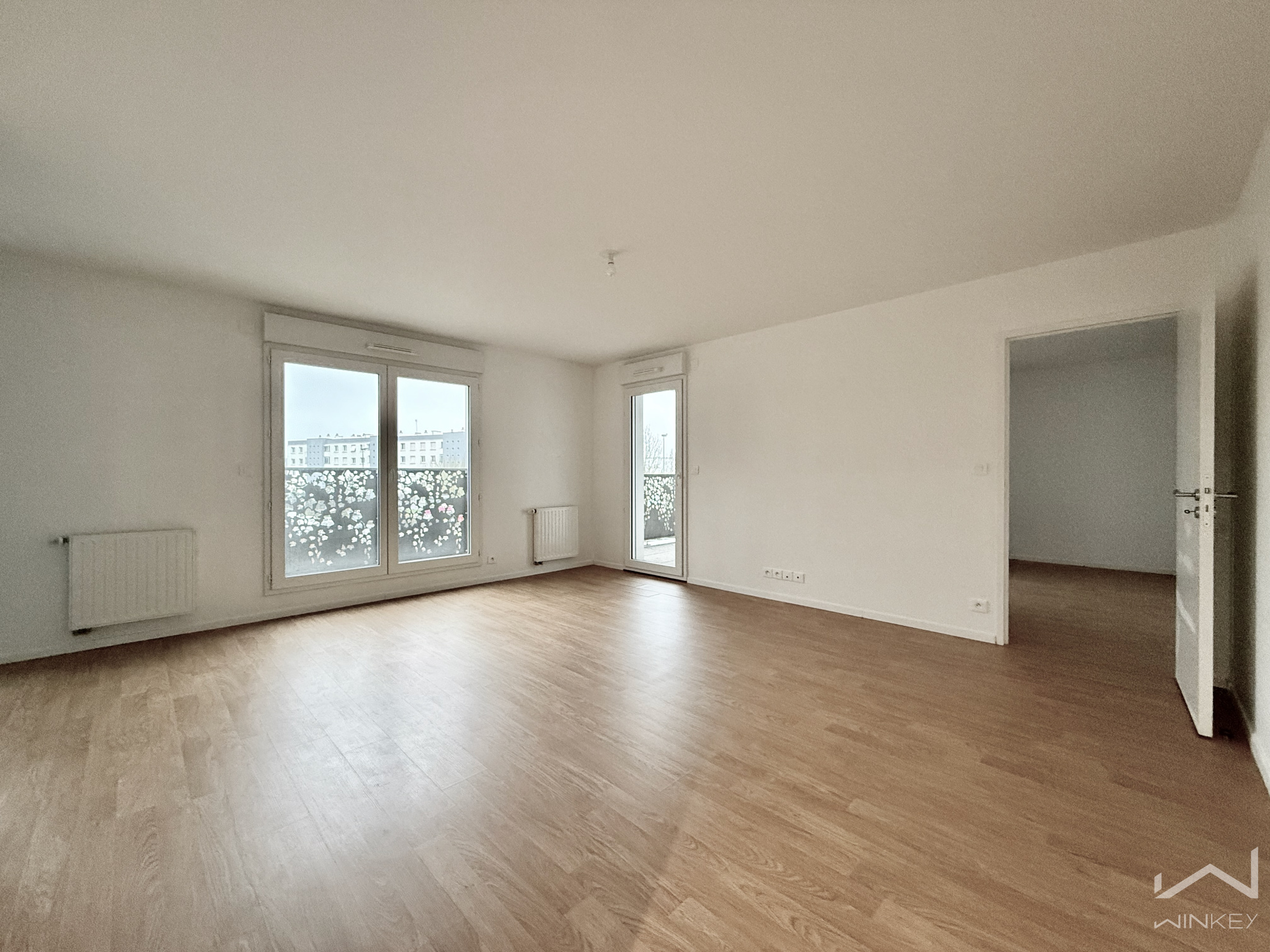 Situé au 2e étage d’un immeuble de 7 étages et idéalement placé proche parcs (ballade pédestre), commerces, transports, métro, bus, écoles et toutes commodités à pied, il comprend : Une belle entrée avec placard, un salon/séjour lumineux de 29m², une cuisine équipée ouverte, deux chambres d’environ 12 m² et 11 m², une salle de bains de 5 m² et des WC séparés. Les menuiseries sont en double vitrage et l'ensemble du logement est sur parquet. Une terrasse d’environ 9 m² exposée Est donne sur une chambre et sur le salon/séjour.
