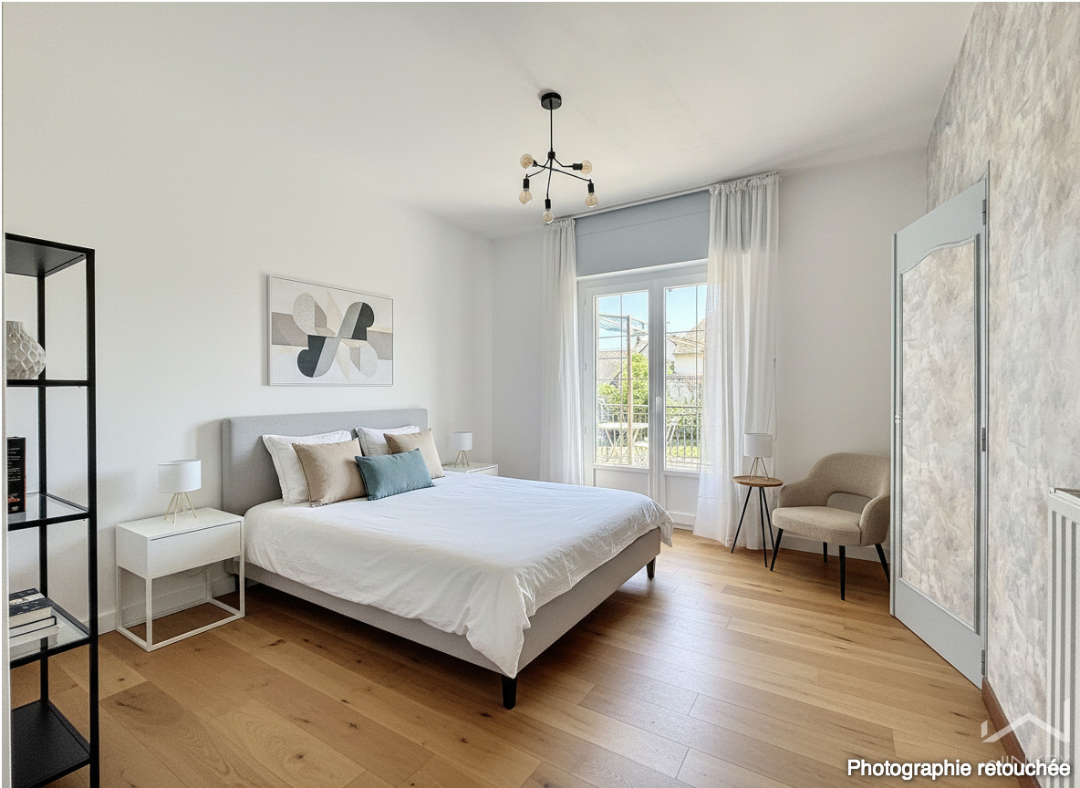 Côté nuit, un dégagement dessert trois très belles chambres (14, 13 et 12 m²) sur parquet d’origine, une salle d’eau et un wc indépendant.