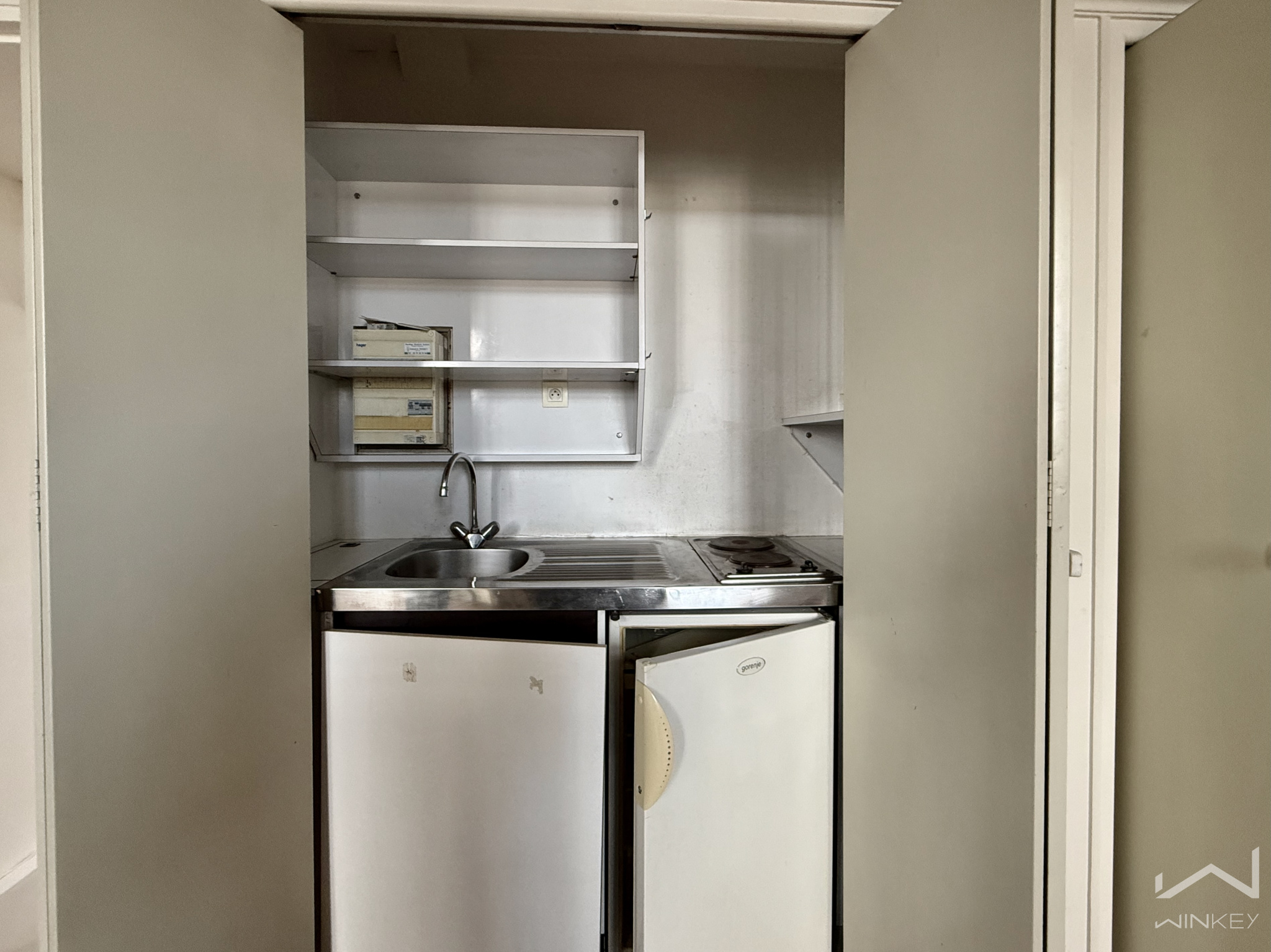 L’appartement se compose d’une entrée avec couloir intégrant un placard de rangement et un accès aux WC, d’une agréable pièce de vie baignée de lumière avec kitchenette, ainsi que d’une salle de bain.