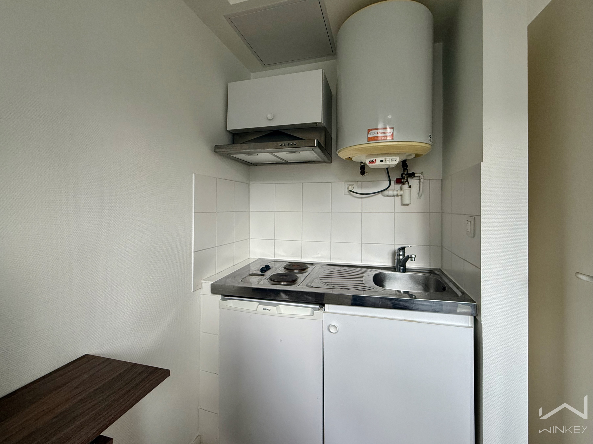 L’appartement se compose d’une entrée, d’une pièce de vie optimisée d’environ 11 m² avec espace kitchenette, ainsi que d’une salle d’eau avec WC intégrés.