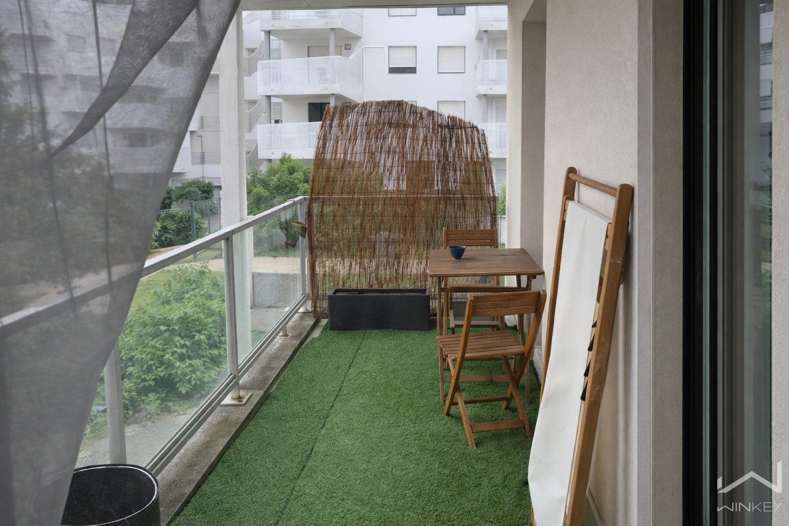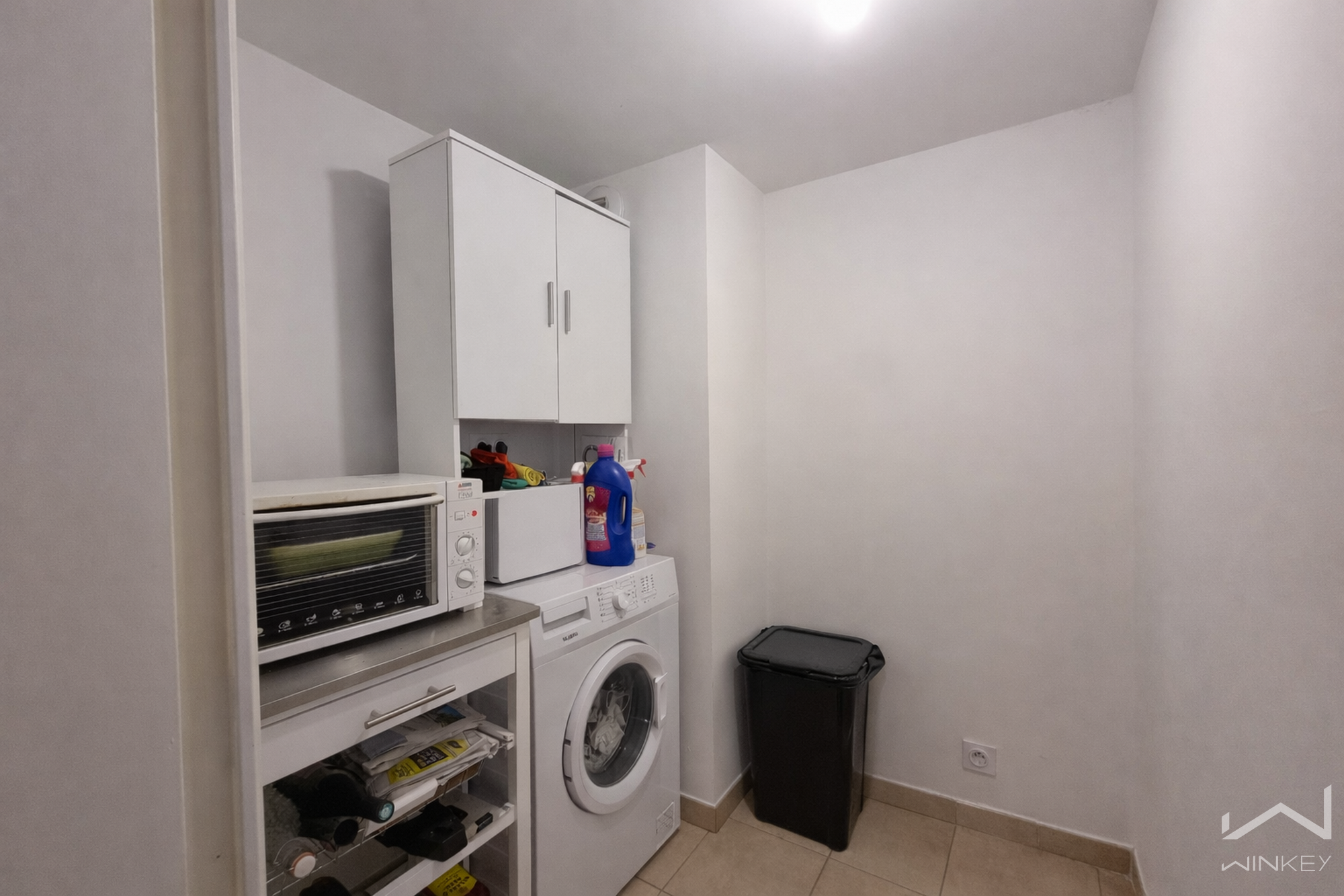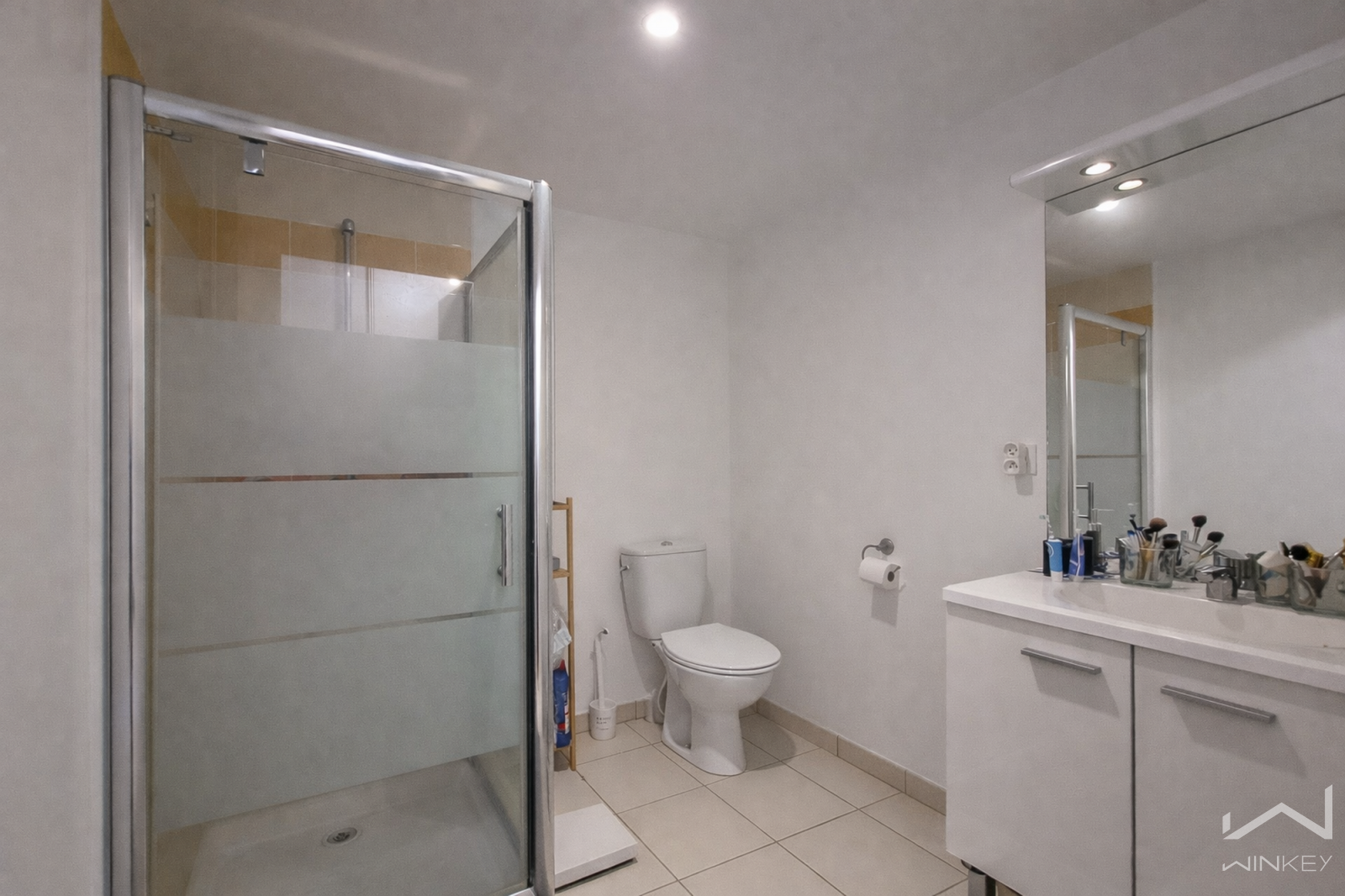L’appartement se compose d’une entrée, d’un séjour lumineux exposé sud-ouest avec un bel espace cuisine et accès à une terrasse, d’une chambre disposant également d’un accès à la terrasse, d’une salle de bains avec WC et d’un cellier. L’agencement est fonctionnel, l’ensemble est en très bon état et bénéficie de prestations confortables comme les volets électriques, de larges ouvertures et une bonne performance énergétique avec un DPE C.