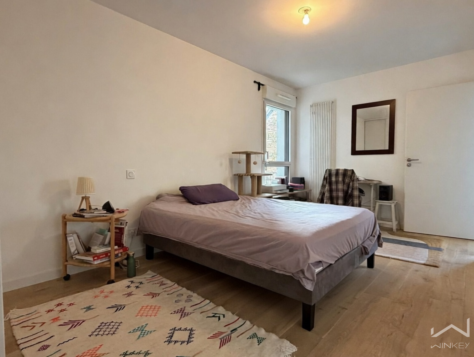 Dès l'entrée, grand séjour/cuisine aménagé, un dégagement avec placard, un WC séparé, une grande chambre, une salle d'eau.