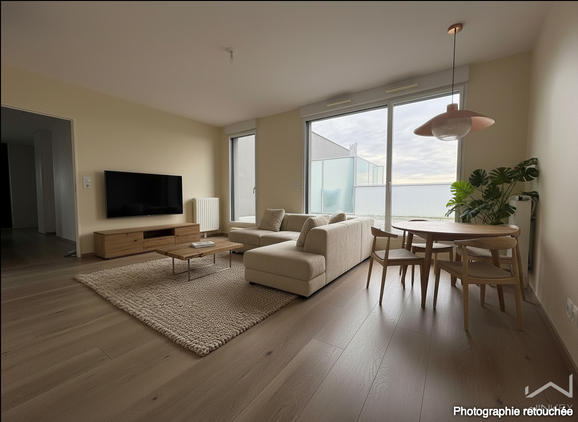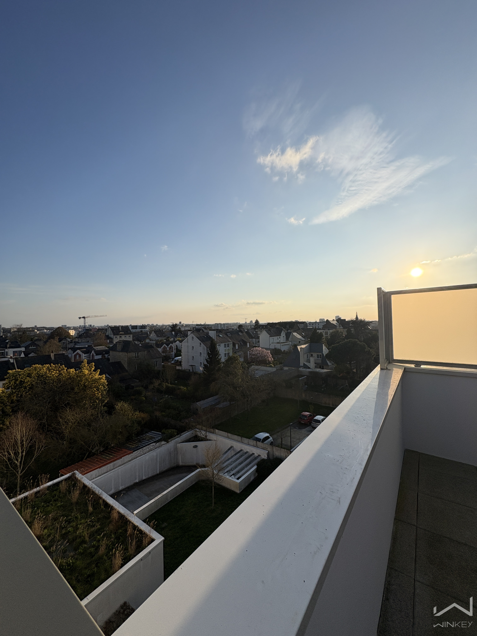 SOUS COMPROMIS . En exclusité, quartier Jeanne d'Arc, à l'angle de la rue de Danton et du Boulevard de Vitré, se situe ce superbe T3 en rooftop de 78m2, un bien rare qui conjugue lumière, volumes généreux et prestations haut de gamme. La résidence récente et sécurisée dispose d'un ascenseur pour un confort au quotidien.