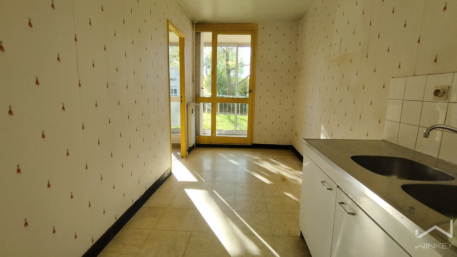 Il se compose d’une entrée, d’une cuisine à aménager (avec possibilité d’ouverture sur le séjour), et d’un salon-séjour lumineux exposé OUEST donnant sur un beau balcon.