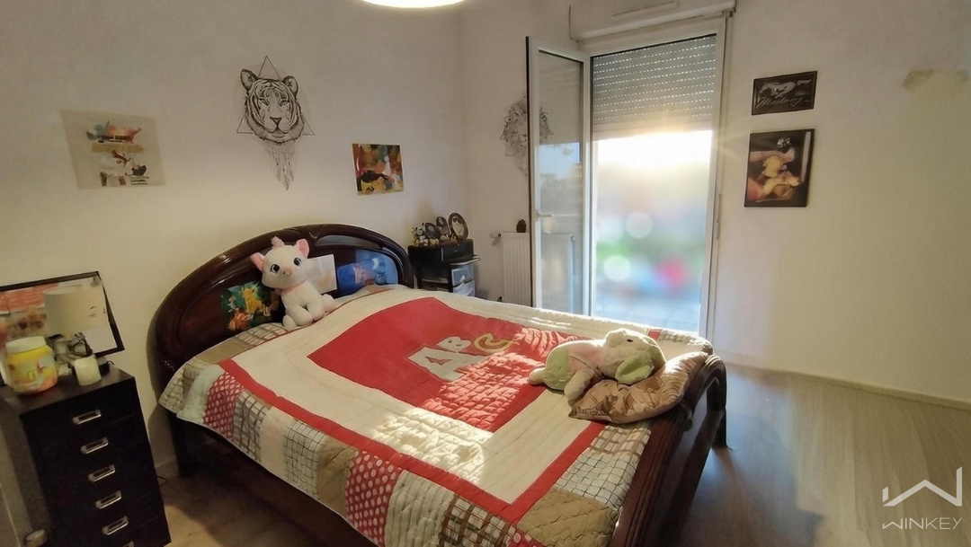 Côté nuit, vous trouverez trois chambres, dont deux bénéficiant d’un accès direct à un jardin privatif, ainsi qu’une salle d’eau équipée d’une grande douche et un WC séparé.