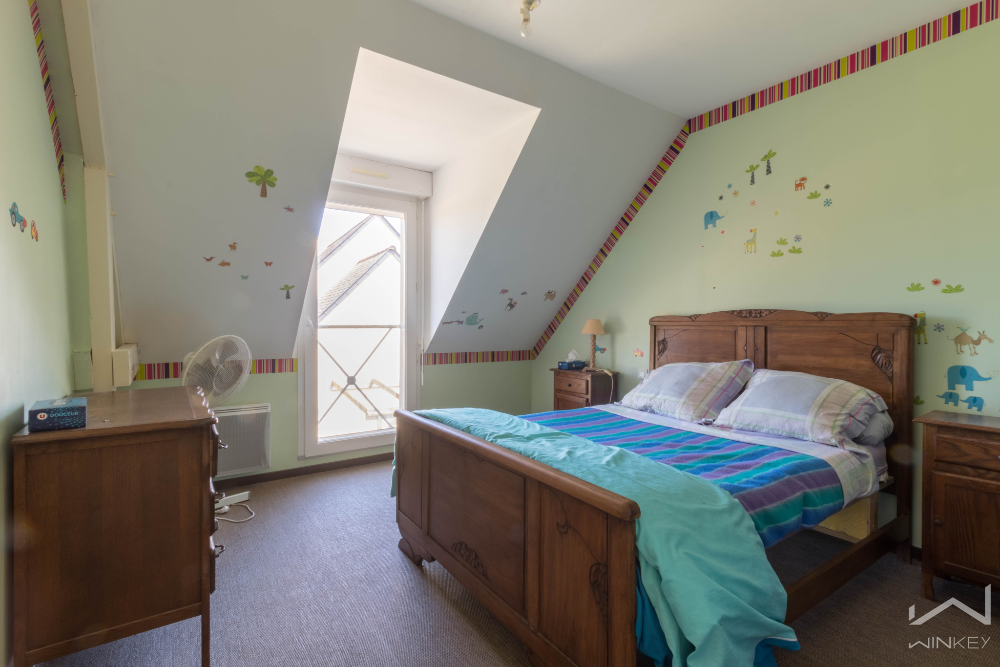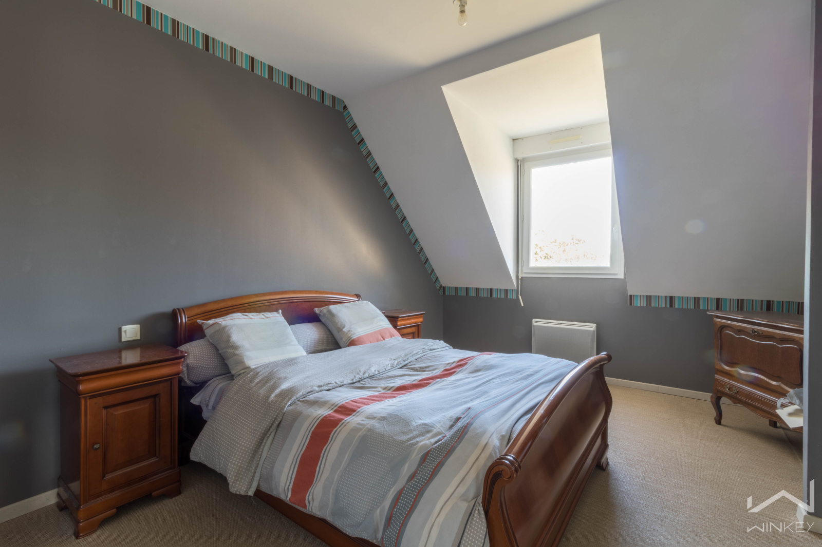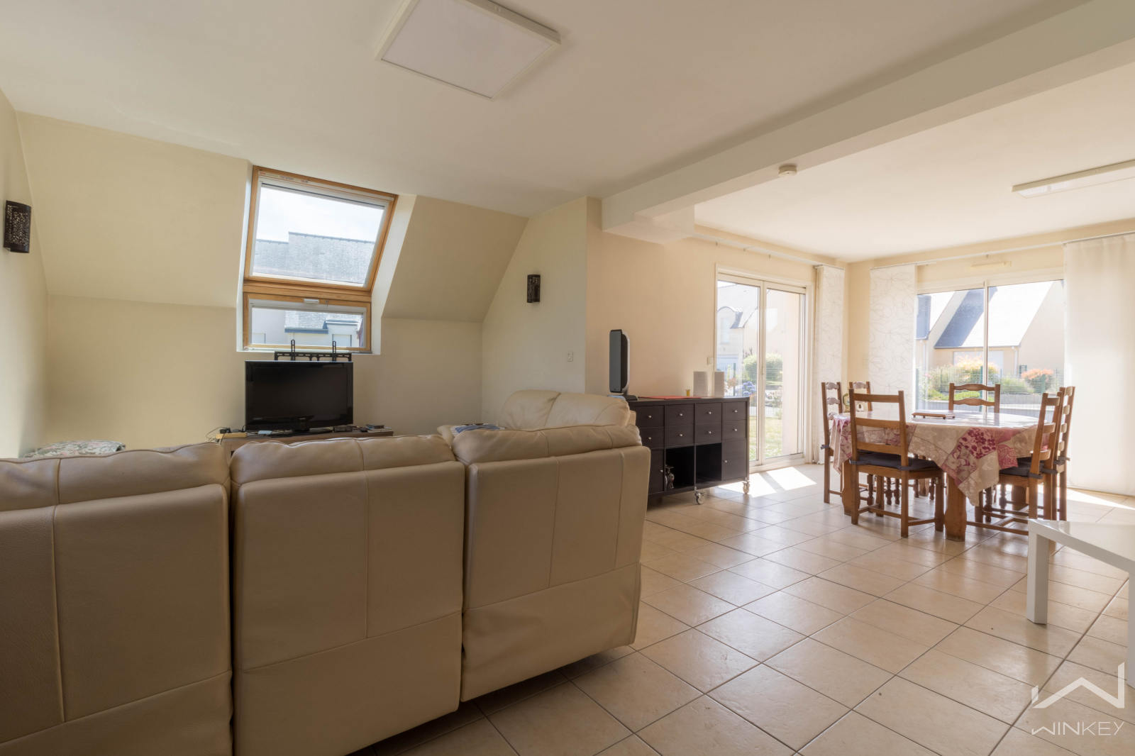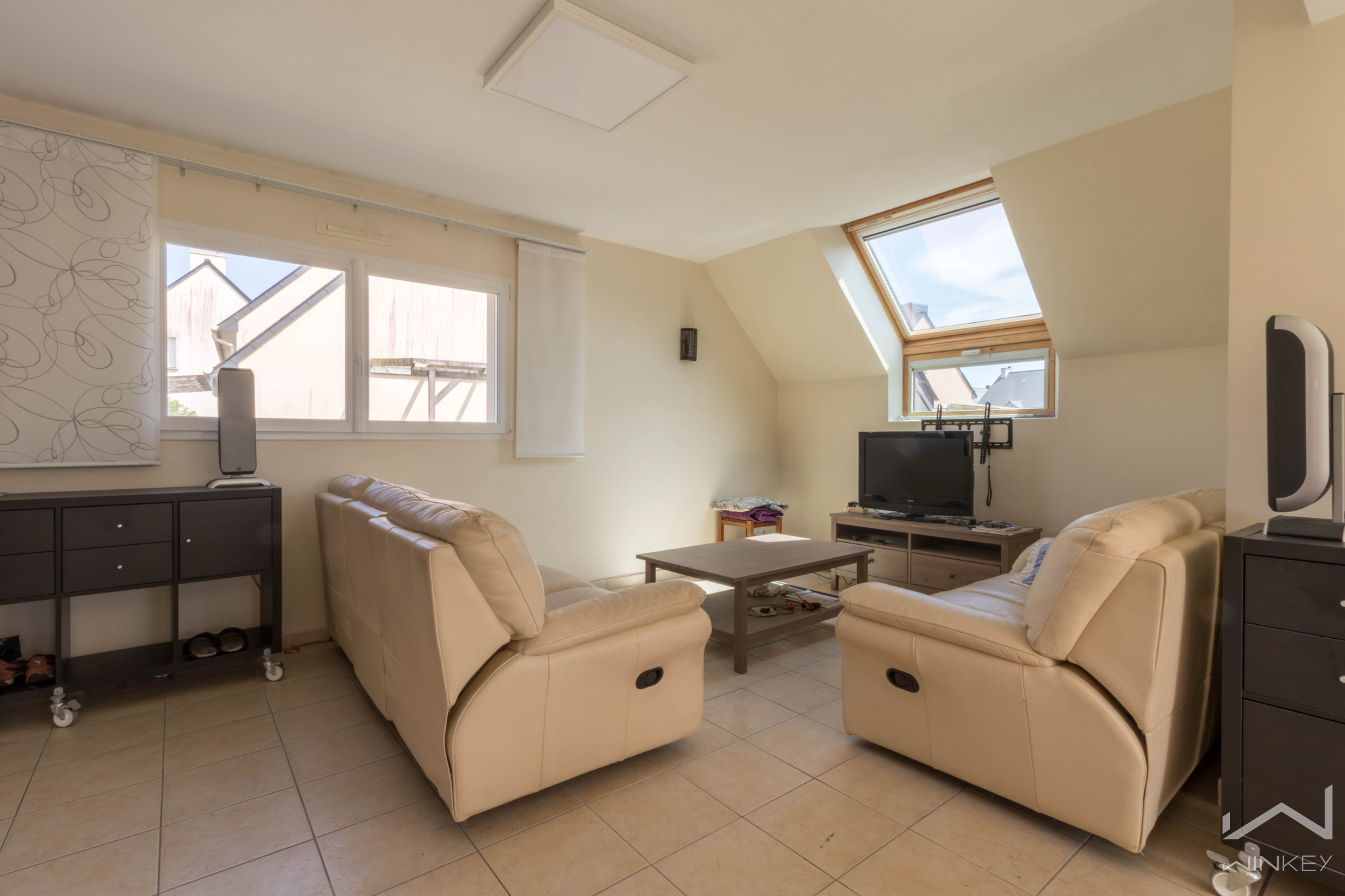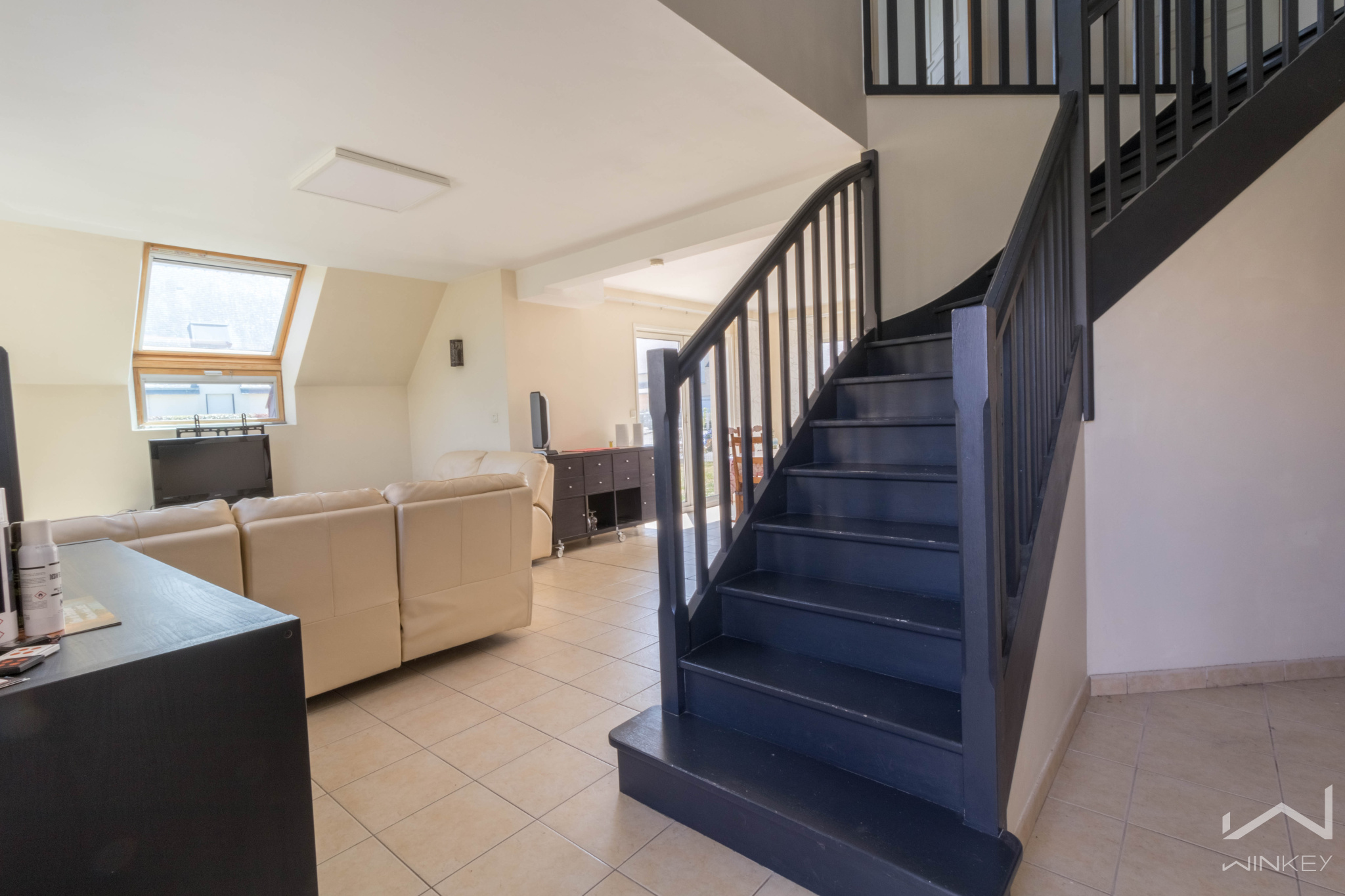 À l’étage, vous trouverez trois chambres confortables, une salle de bain, des toilettes et un grenier qui a été isolé et aménagé en espace cinéma, parfait pour vos moments de détente en famille ou entre amis.