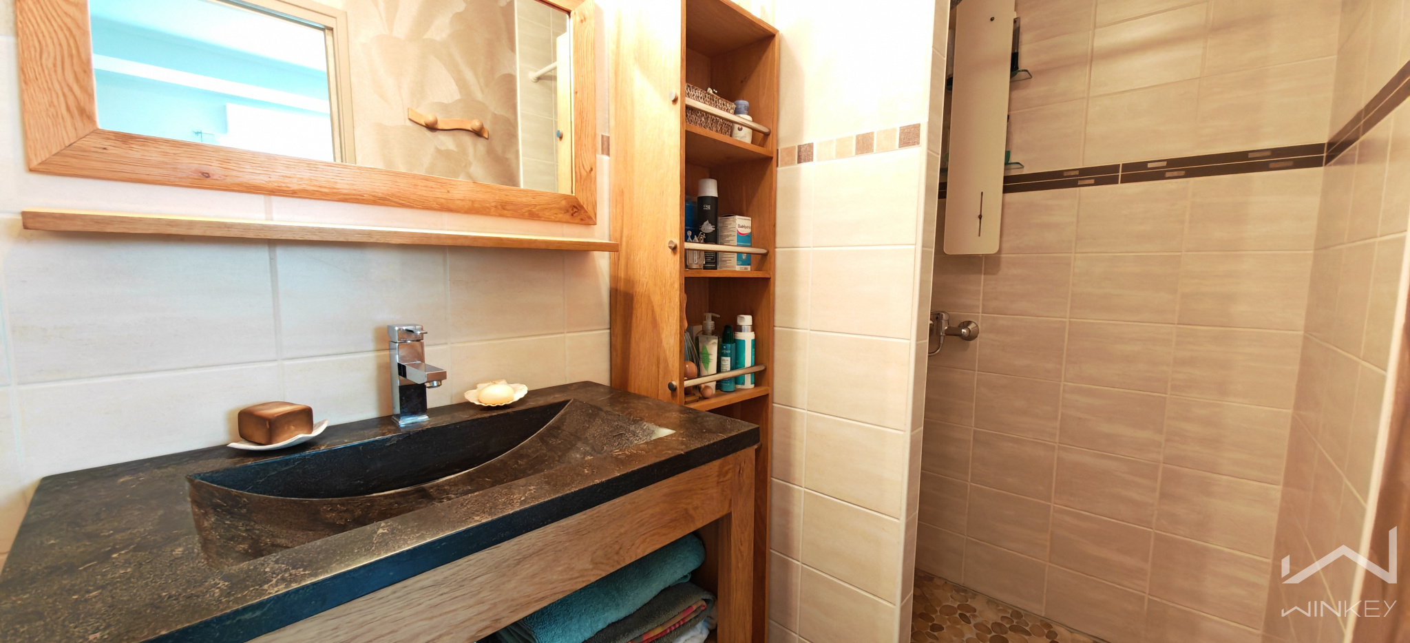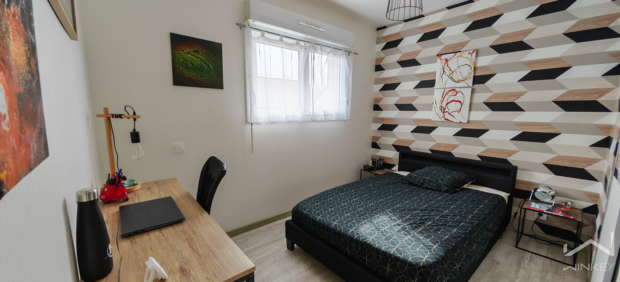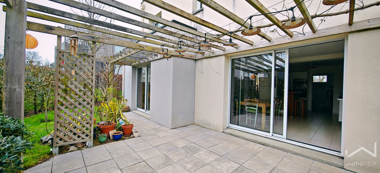Elle se compose d'une pièce de vie baignée de lumière avec sa cuisine aménagée et équipée donnant sur une terrasse avec sa pergola végétalisée plein sud, de 5 chambres dont une suite parentale au rez de chaussée avec sa salle d'eau, de deux wc et d'une deuxieme salle d'eau à l'étage.