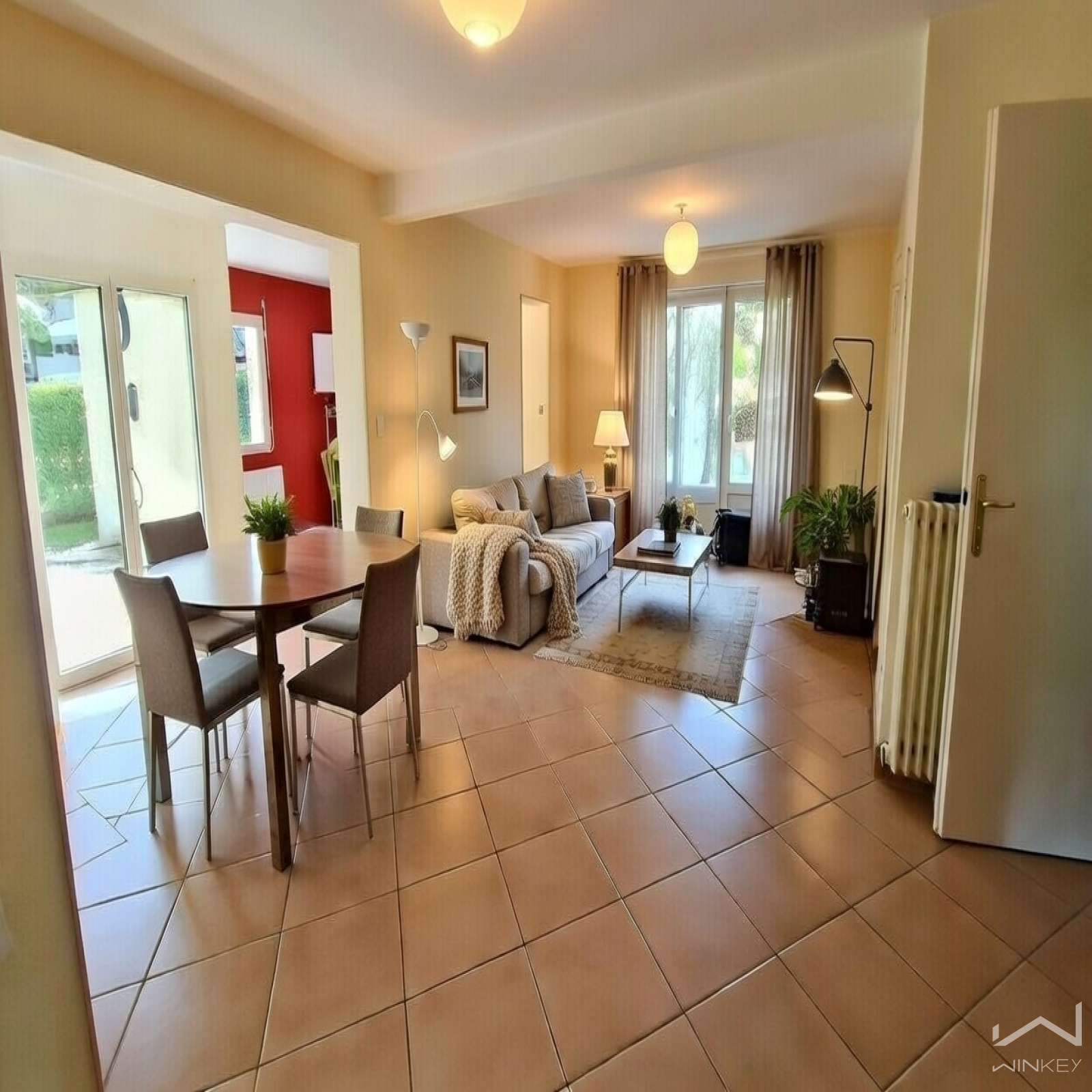 Le rez de chaussée se compose d'une entrée avec placard, un grand salon-séjour avec extension sur jardin, cuisine aménagée pouvant être ouverte sur séjour, une chambre, salle d’eau avec WC.