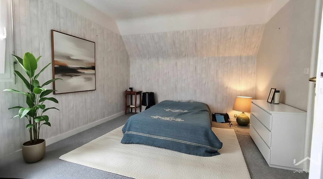L'étage se compose lui d'un palier qui dessert trois chambres, une salle d’eau moderne, WC séparé.