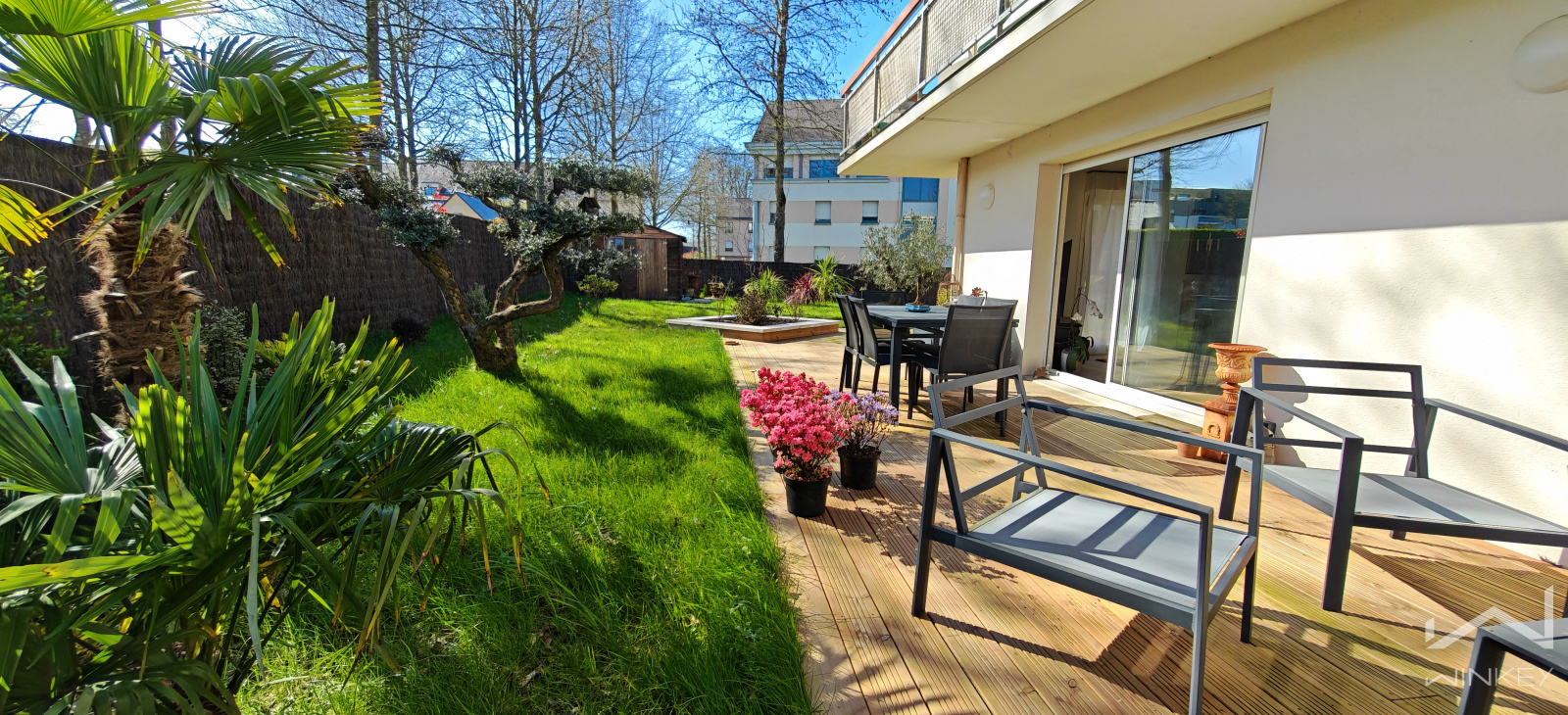 À Pacé, aux portes de Rennes, vivre dans un appartement avec un jardin paysagé de 220 M2.. avec sa terrasse de 60 M2 en L vous séduira à coup sur...