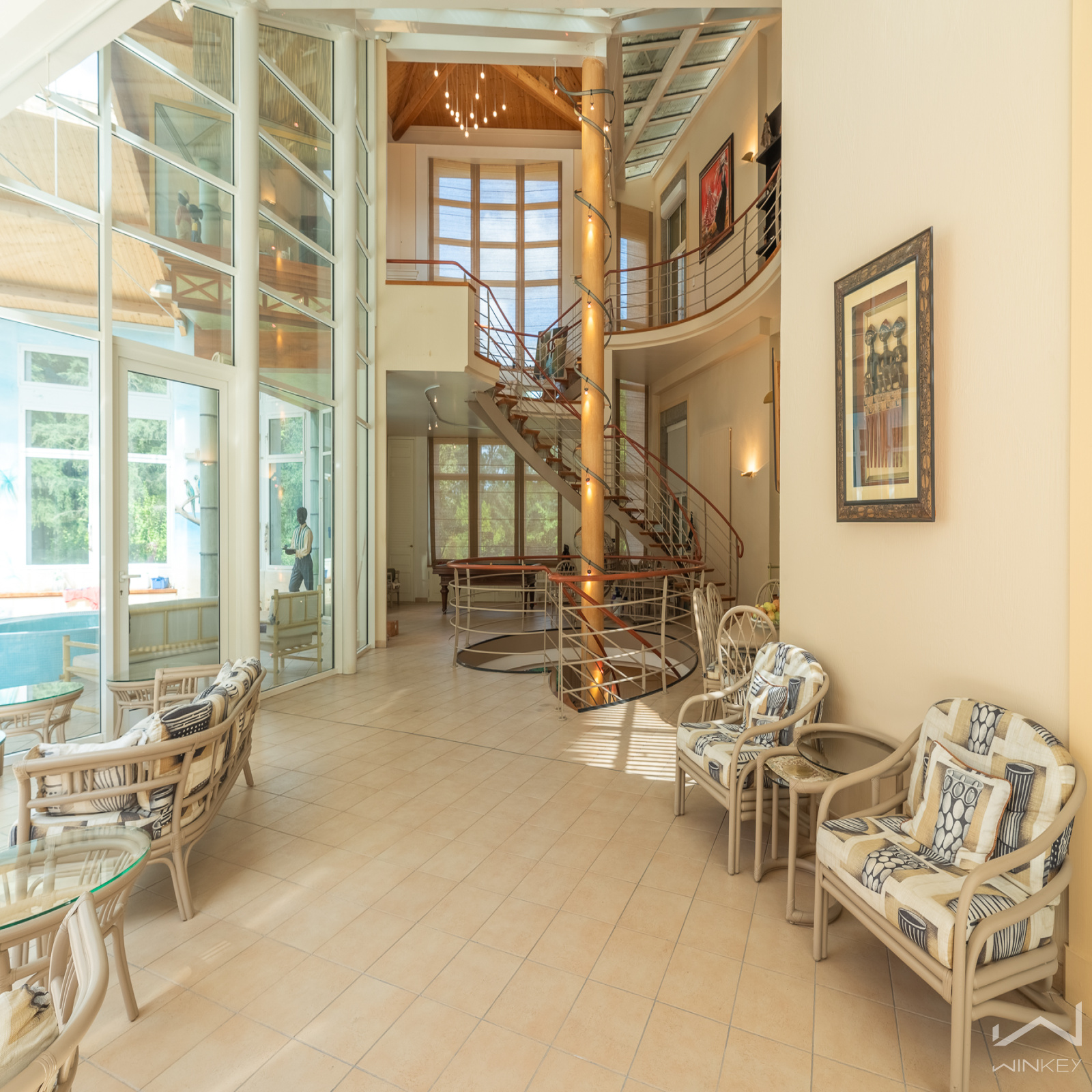 Sports enthusiasts will appreciate a fully equipped gym for daily workouts. Additionally, a covered tennis court is available, allowing you to practice your favorite sport year-round.