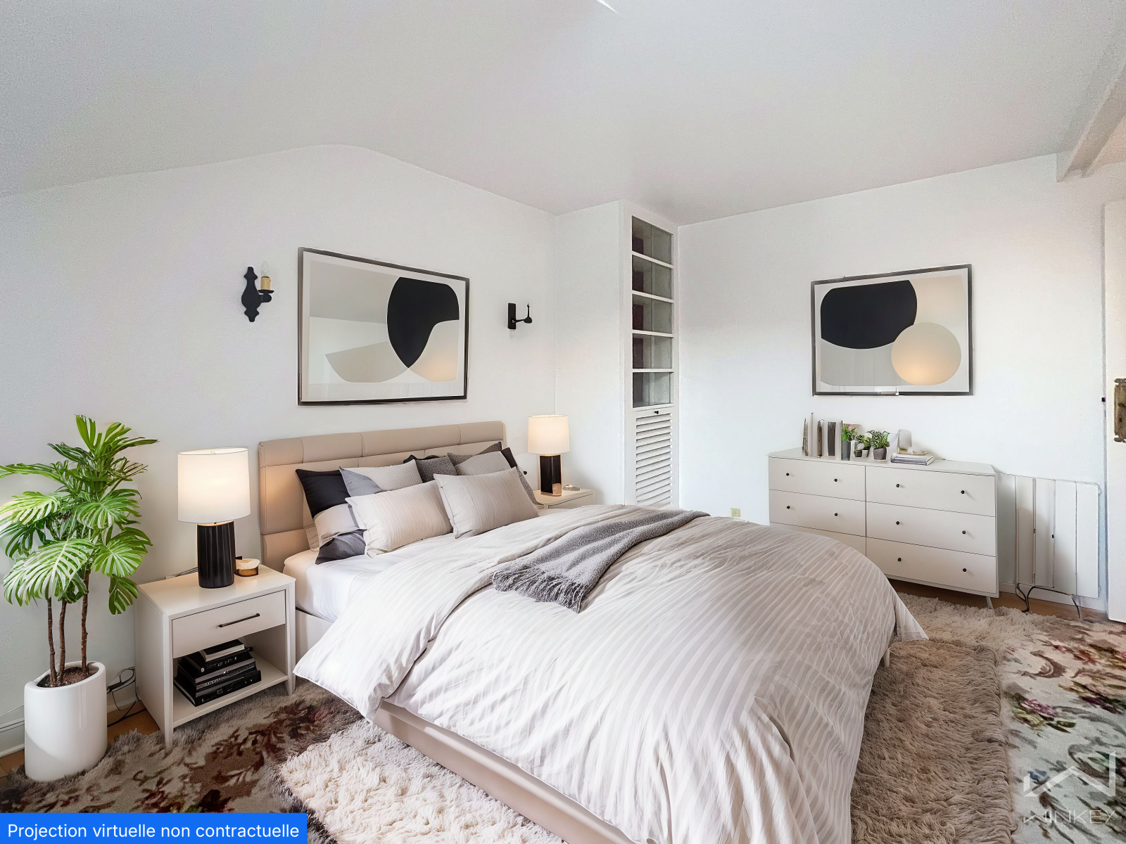 Il se compose d’une belle entrée, d’une spacieuse salle de bain déjà équipée d’une baignoire, d’une douche et d’une double vasque (à rafraîchir ou à déplacer selon votre projet), ainsi que de 4 chambres, dont certaines peuvent être repensées pour accueillir un salon, une cuisine ouverte sur la pièce de vie ou une nouvelle salle d’eau.