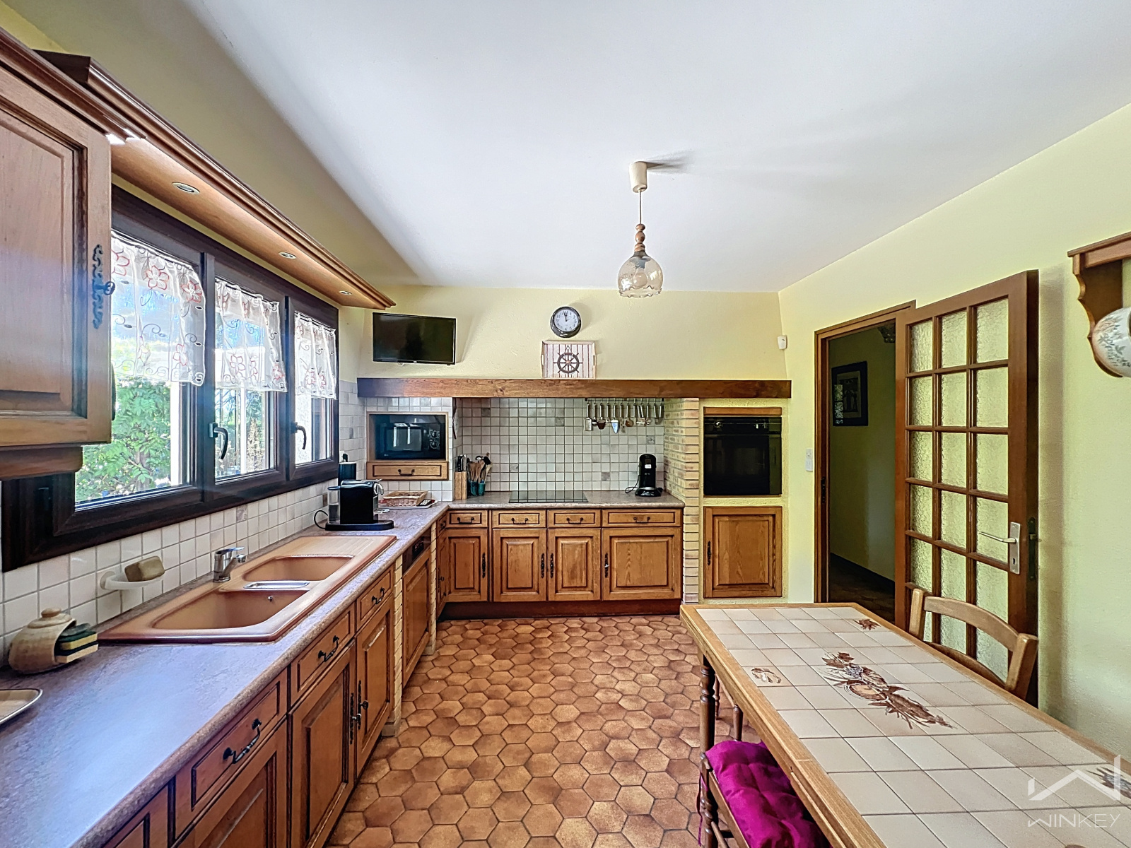 Au rez-de-chaussée : Une entrée avec dégagement, un vaste double salon-séjour lumineux avec cheminée, une cuisine aménagée et équipée et une arrière cuisine, une véranda 4 saisons, une suite parentale avec salle d'eau attenante, Un WC indépendant, Un garage et Un local technique;