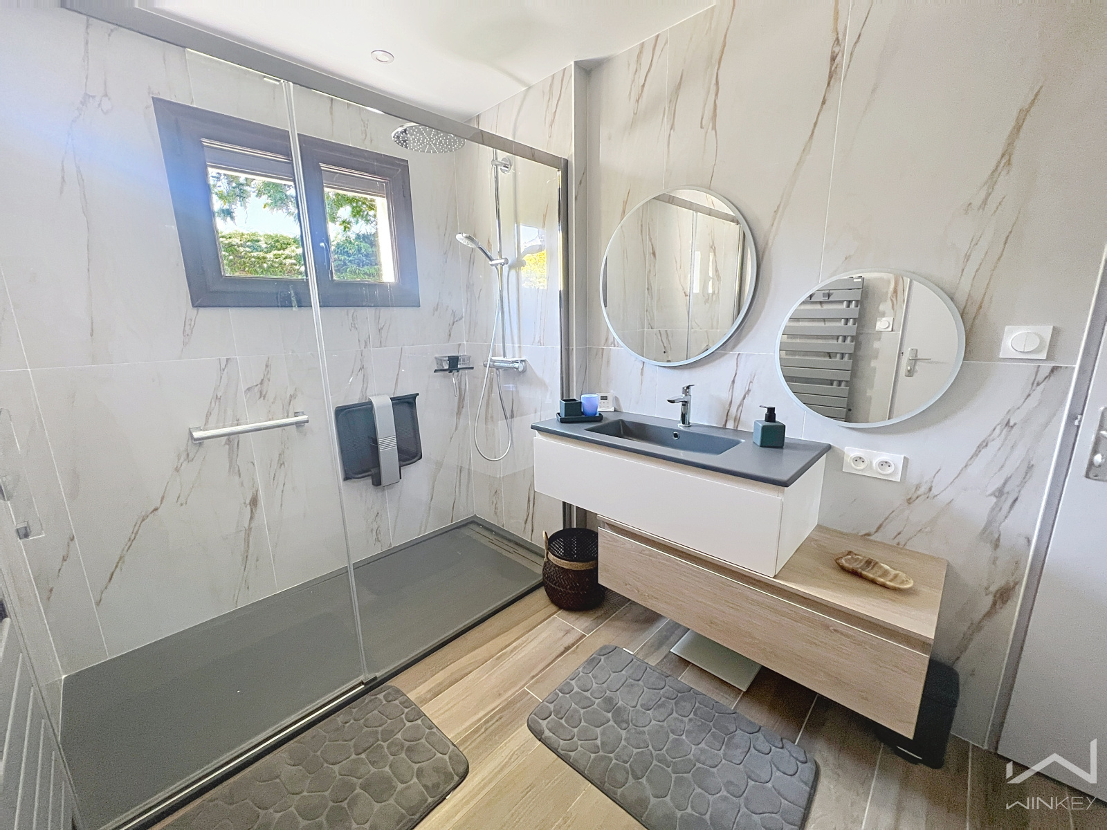 Des travaux ont été réalisés récemment : les salles d'eau ainsi que les WC, installation d'une pompe à chaleur en 2024, ...