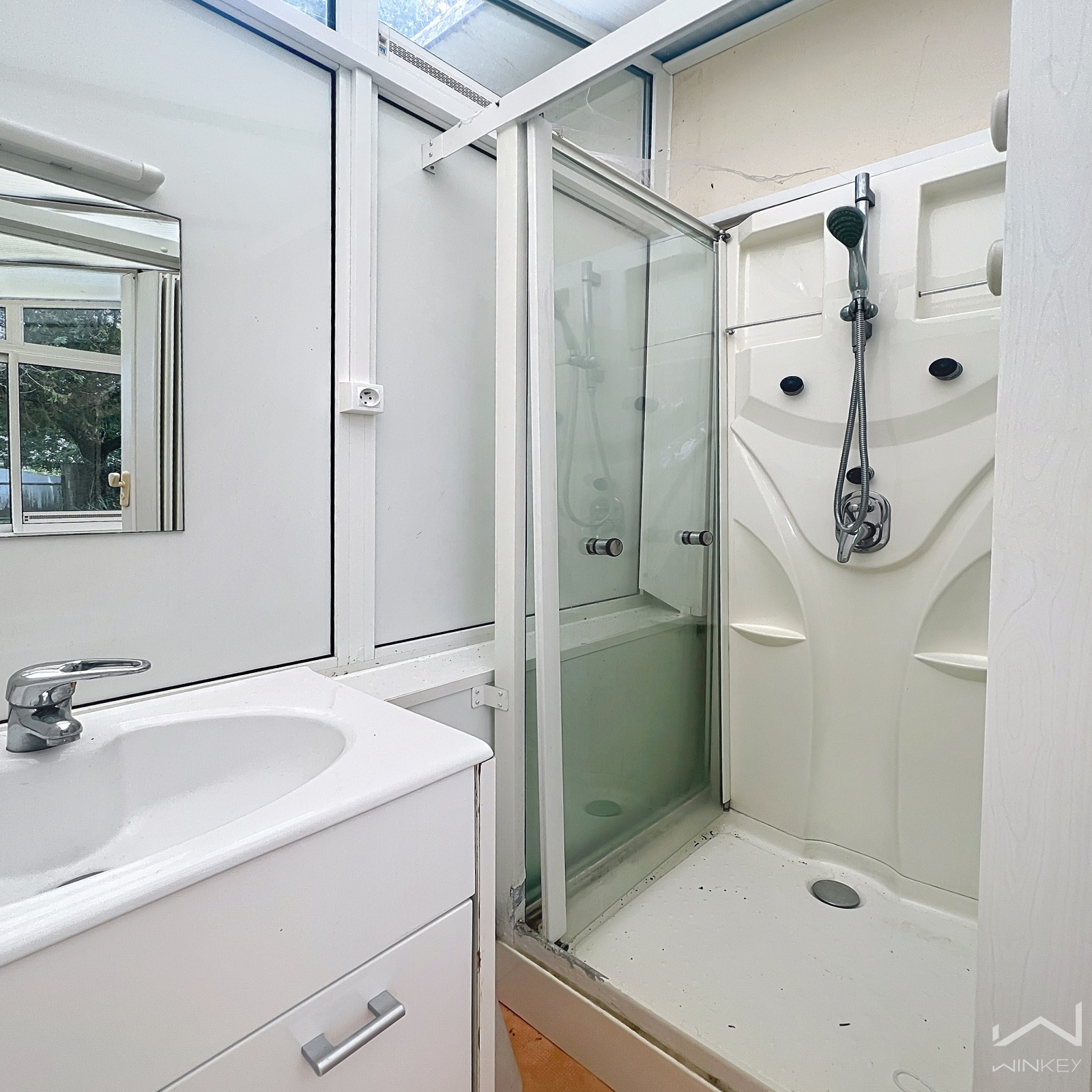 Le terrain accueille une petite maison d’environ 30 m², déjà raccordée à l’eau et à l’électricité. Elle se compose d’une entrée, d’une salle d’eau, d’une cuisine et d’une pièce pouvant servir de salon ou de chambre.