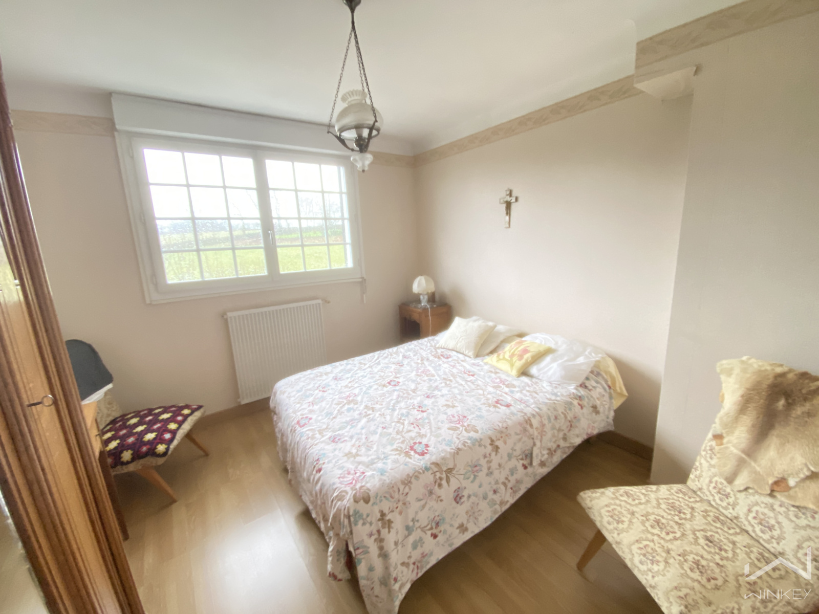 À l’extérieur, vous profiterez d’un beau parc clôturé, paysagé et arboré, agréable et sans vis-à-vis, avec poulaillers et cave.