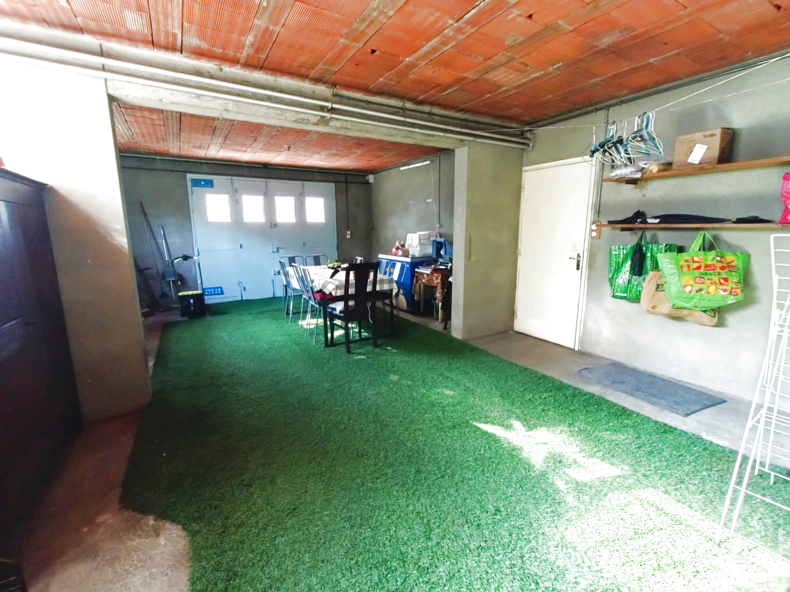 - Au RDC : une large entrée, deux chambres dont une de 18m2, un grand garage de 37m2, avec point d'eau.