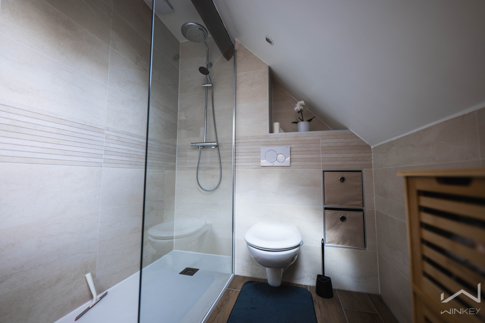 Dès l’entrée, vous serez séduit par des espaces fonctionnels comprenant des rangements, des WC indépendants ainsi qu’un accès direct à un garage de plus de 30 m².