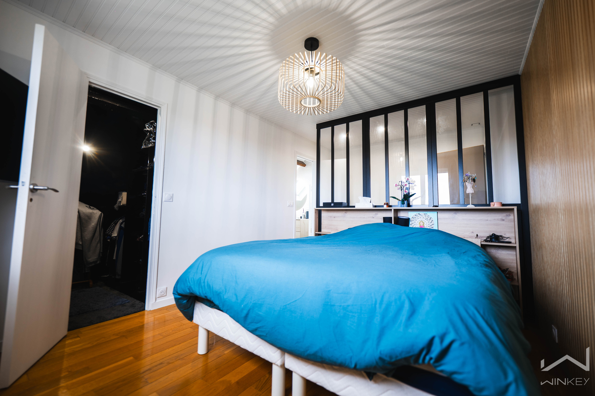 À l’étage, un palier dessert quatre chambres, dont une suite parentale, un bureau, ainsi qu’une salle de bain avec WC.