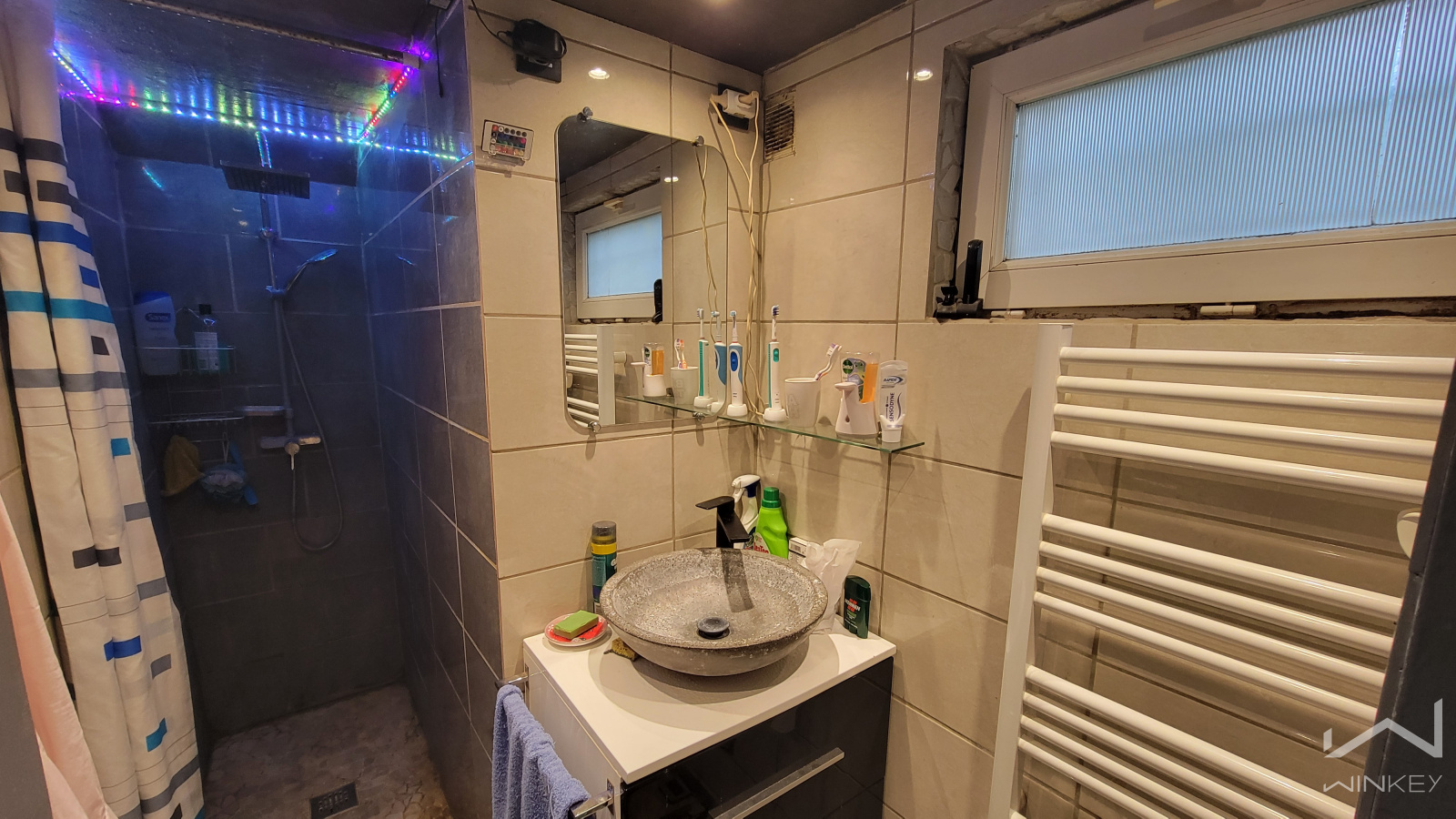 Au rez-de-chaussée : une entrée indépendante dessert un lumineux salon/salle à manger, une cuisine séparée fonctionnelle et bien agencée, une chambre, une salle d'eau, un WC indépendant et une buanderie pratique.