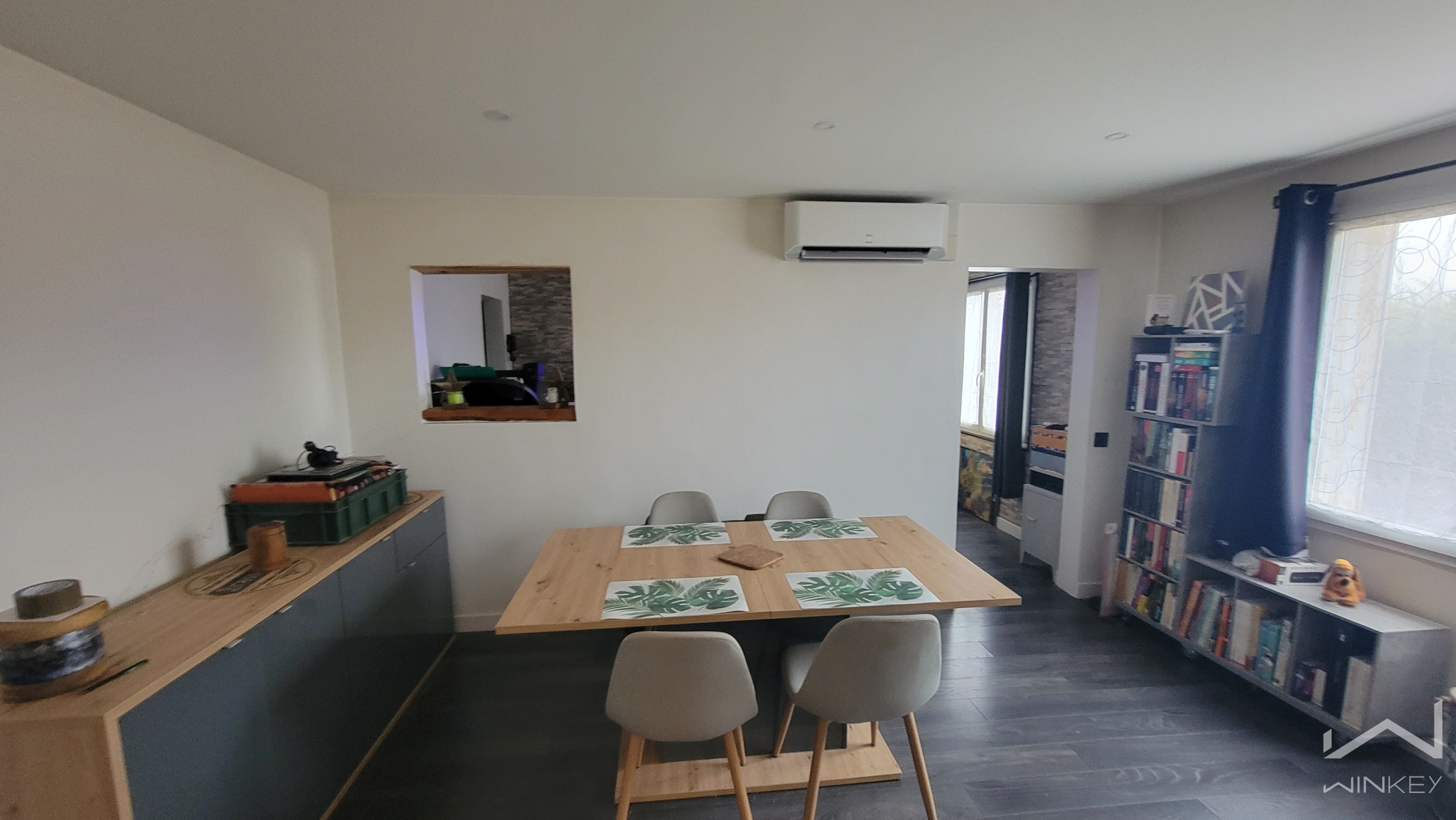 Confort moderne : double vitrage, poêle à bois chaleureux et pompe à chaleur réversible garantissent bien-être et économies d'énergie toute l'année.