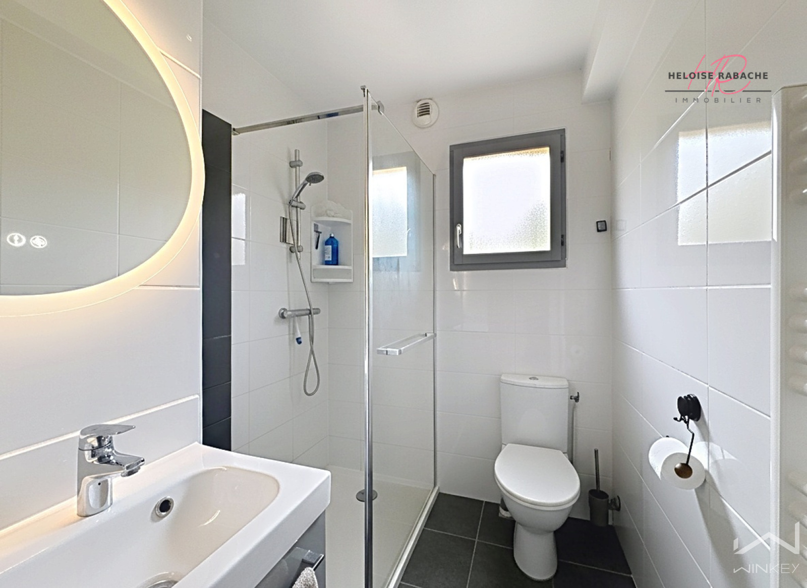 Elle propose au rez-de-chaussée une entrée avec rangements, chambre avec salle d’eau et WC ainsi qu’une belle pièce de vie lumineuse de plus de 40 m². À l’étage, trois chambres avec placards, une salle de bains et un WC indépendant complètent l’espace nuit (séjour cuisine ouverte avec un espace salon et son poêle à bois) Le sous-sol total impeccable, dispose d’un espace buanderie carrelé avec possiblité de nombreux rangements.