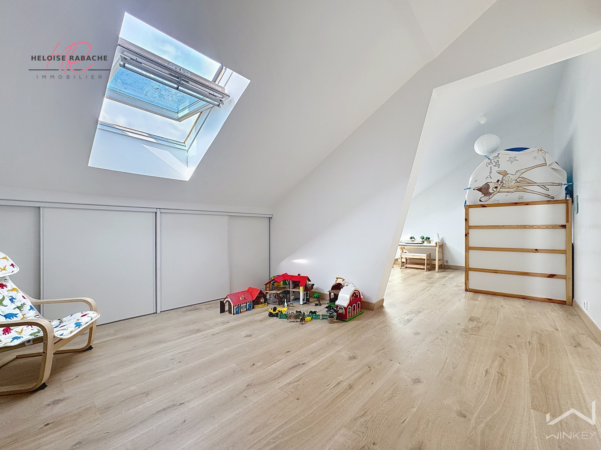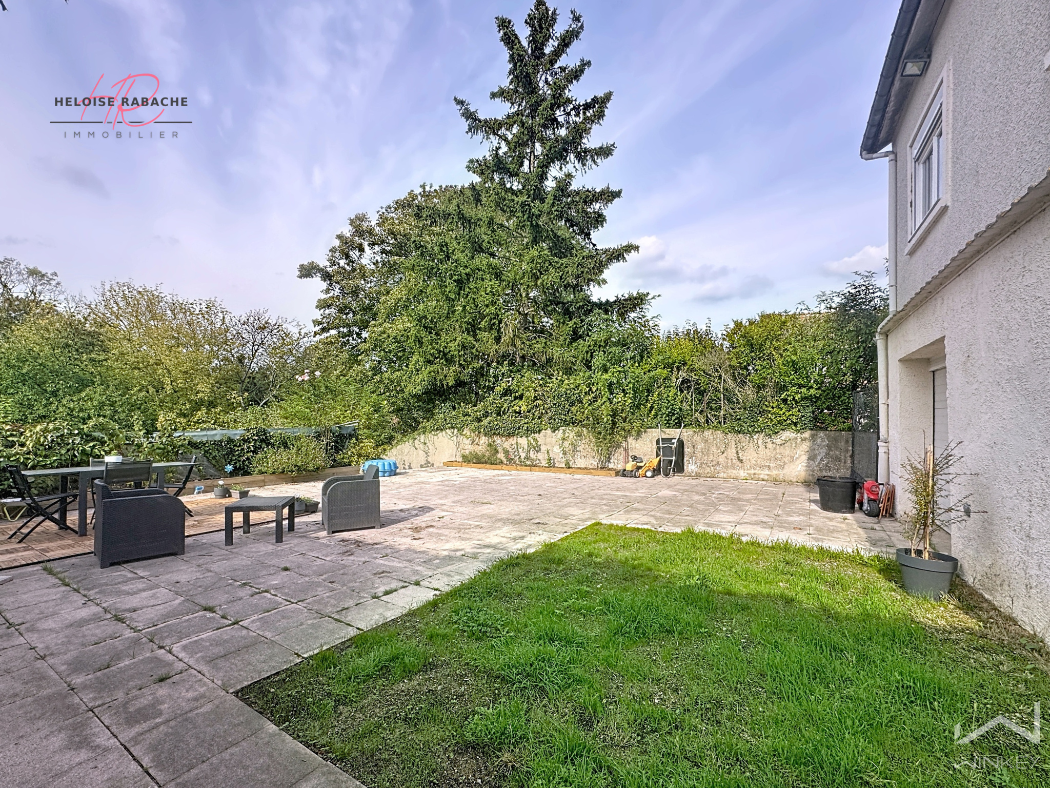 Exposée Est-Ouest, la maison bénéficie d’une belle luminosité tout au long de la journée. Son jardin de 1200 m² est parfait pour laisser les enfants gambader en toute tranquillité.