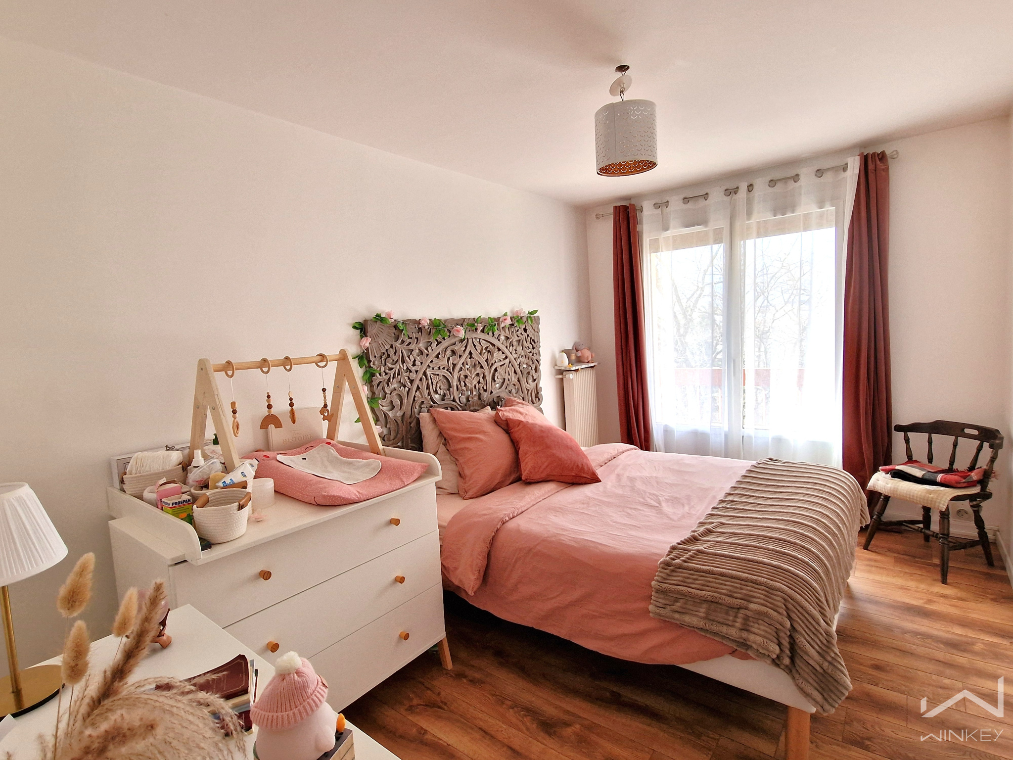 d'autre part un double séjour spacieux exposé OUEST avec terasse, un dégagement permet d'accéder à un grand dressing, des WC indépendants, une salle d'eau RENOVE, deux chambres et un local de rangement.