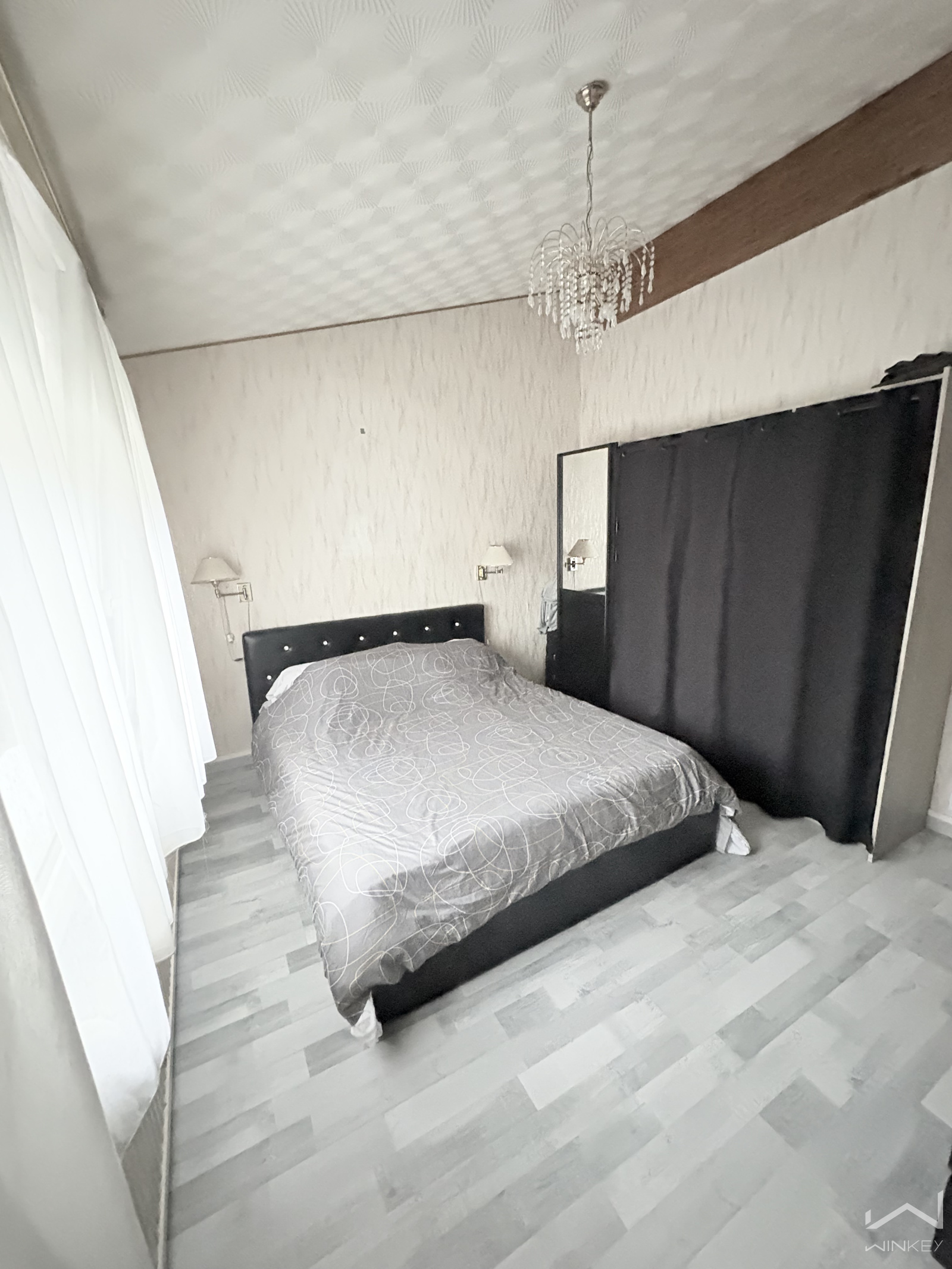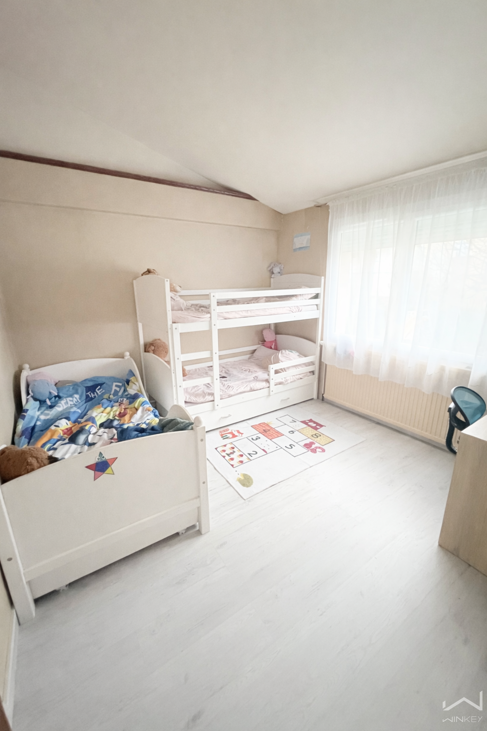 L’espace nuit, bien séparé, se compose de trois chambres avec rangements intégrés, d’une salle de bains et d’un WC indépendant, offrant confort et praticité au quotidien.
