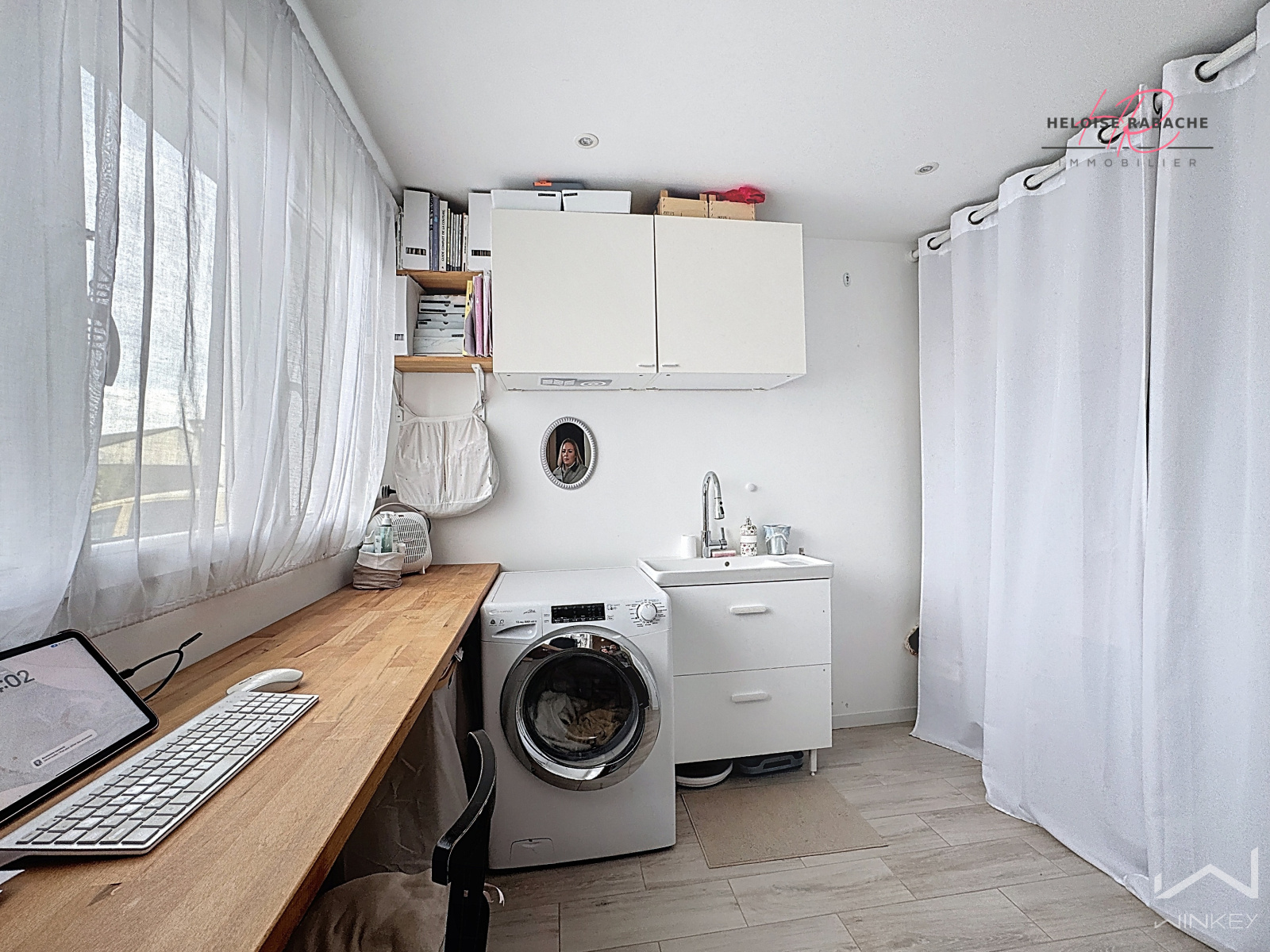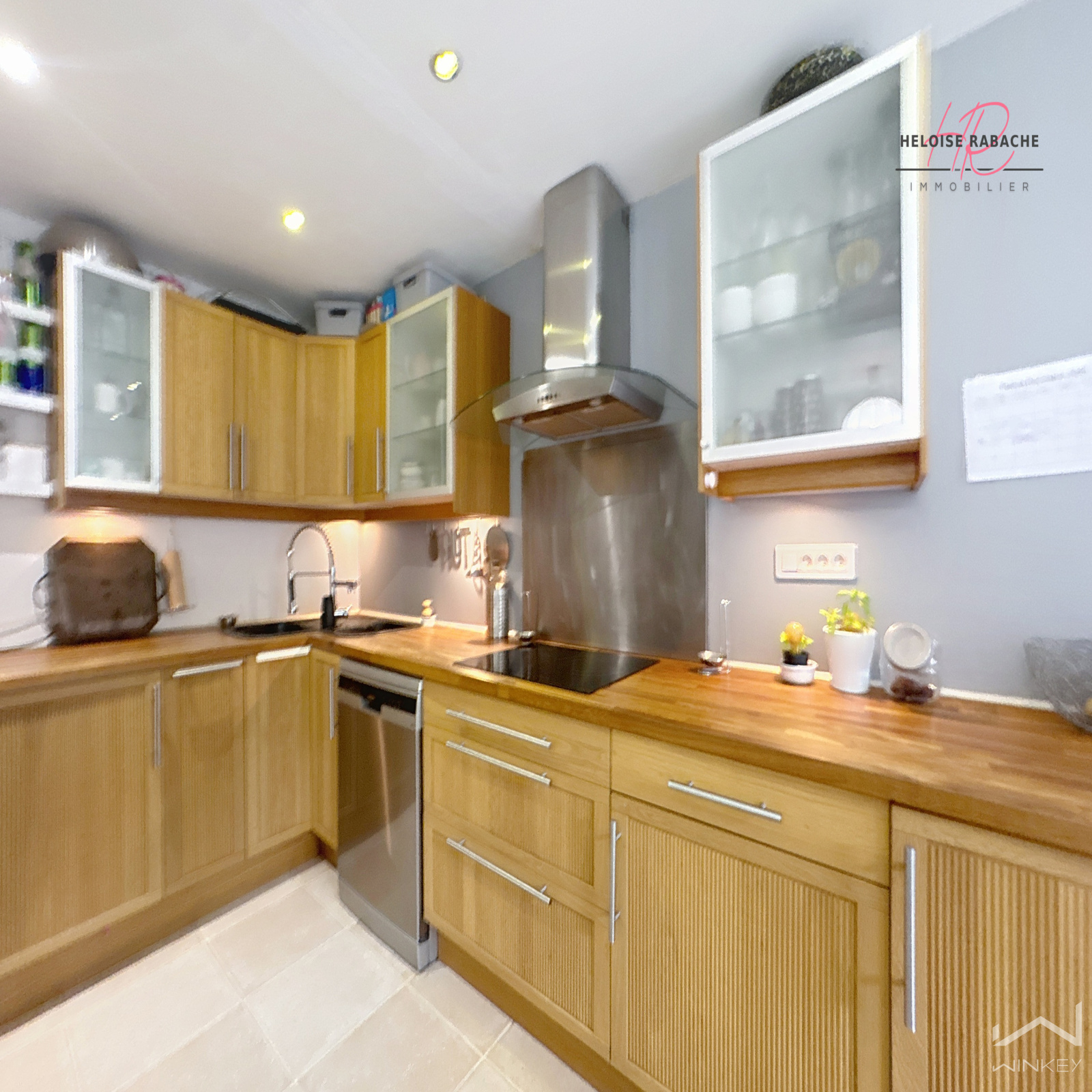 Avec ses 90 m² habitables, elle offre un agencement fonctionnel : au rez-de-chaussée, vous trouverez une entrée, un bureau/buanderie parfait pour le télétravail, des WC indépendants, ainsi que qu'un placard. La pièce de vie comprend une cuisine aménagée et équipée, ouverte sur le séjour et donnant directement accès aux extérieur.