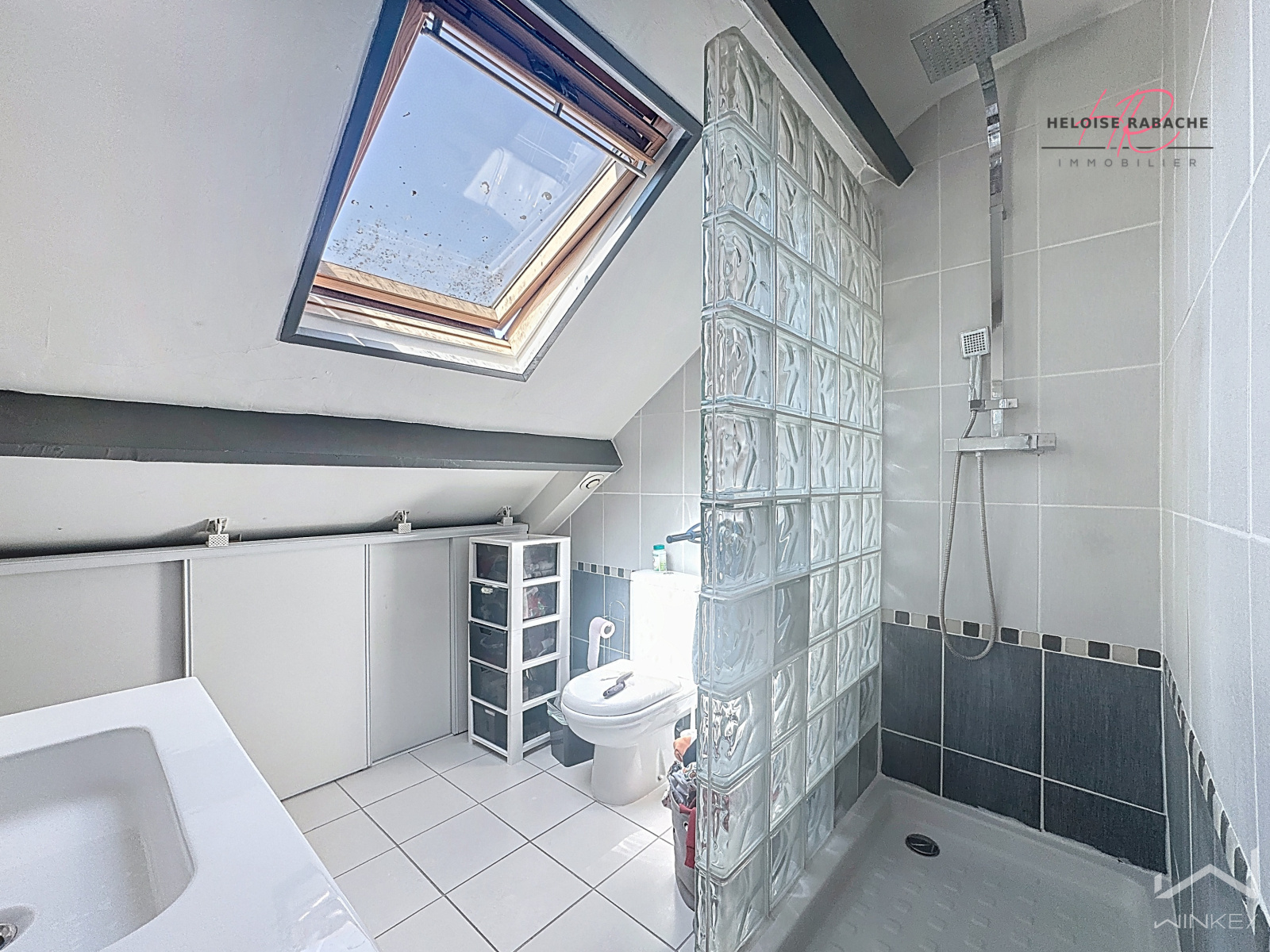 Deuxième étage : un palier pouvant servir d'espace télétravail, deux chambres, salle de douches avec wc.