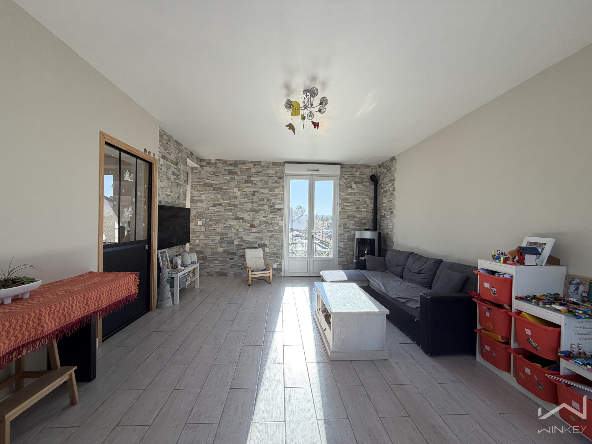 Surface carrez : 71,28 m² sur trois niveaux mais avec les pièces annexes c'est 140 m² dont vous profiterez