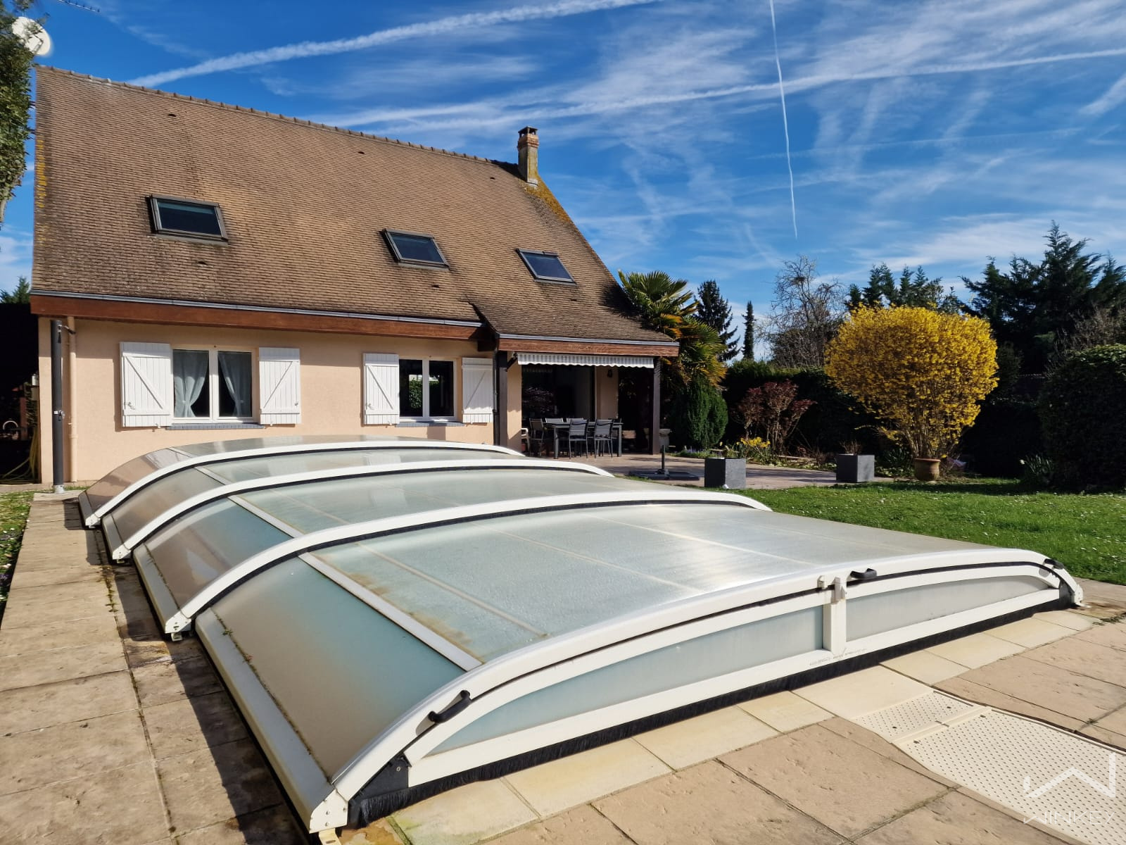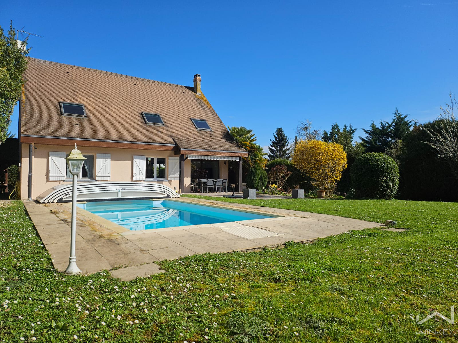 Cette maison de 160 m² au sol (258 m² avec le sous-sol) vous propose un grand séjour/salle à manger, 3 chambres (possibilité d'une quatrième), 1 bureau, 1 grande pièce palière, 1 salle de bain ,1 salle d'eau, 2 wc séparés, un sous-sol total, 2 terrasses et une piscine, sur un terrain paysagé de 1393 m².