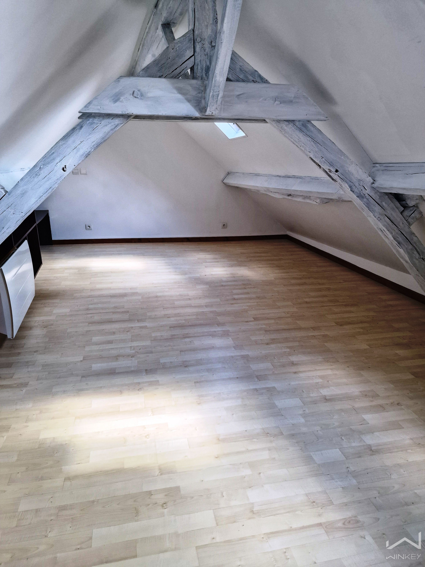 **Sous combles aménagés** : espace à usage de chambre avec rangements, pouvant sans difficulté accueillir un lit double grâce à sa surface au sol de 26 m²