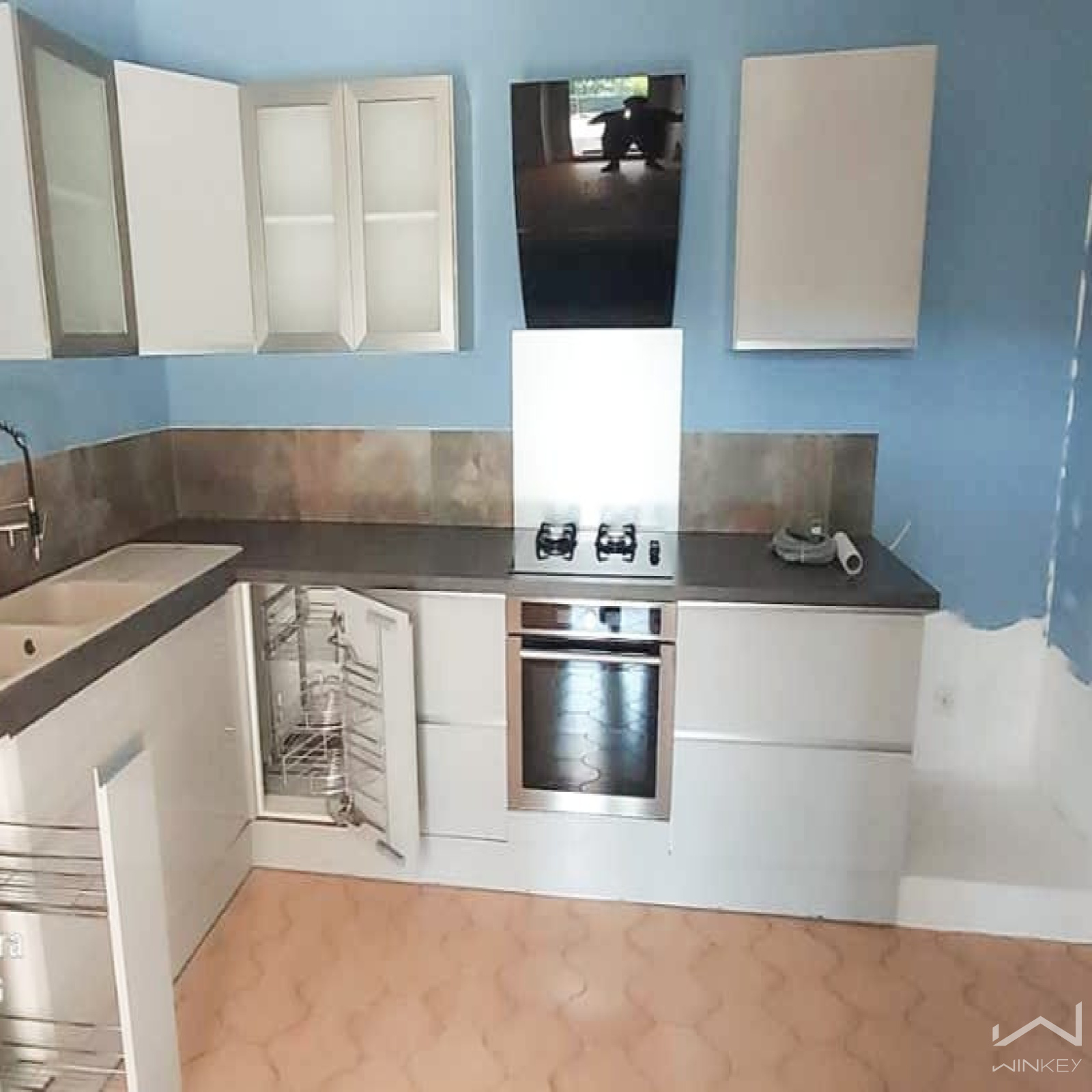 Cette maison dispose d'un salon qui donne sur la terrasse, d'une cuisine neuve, de 2 chambres et 2 salles de bain.