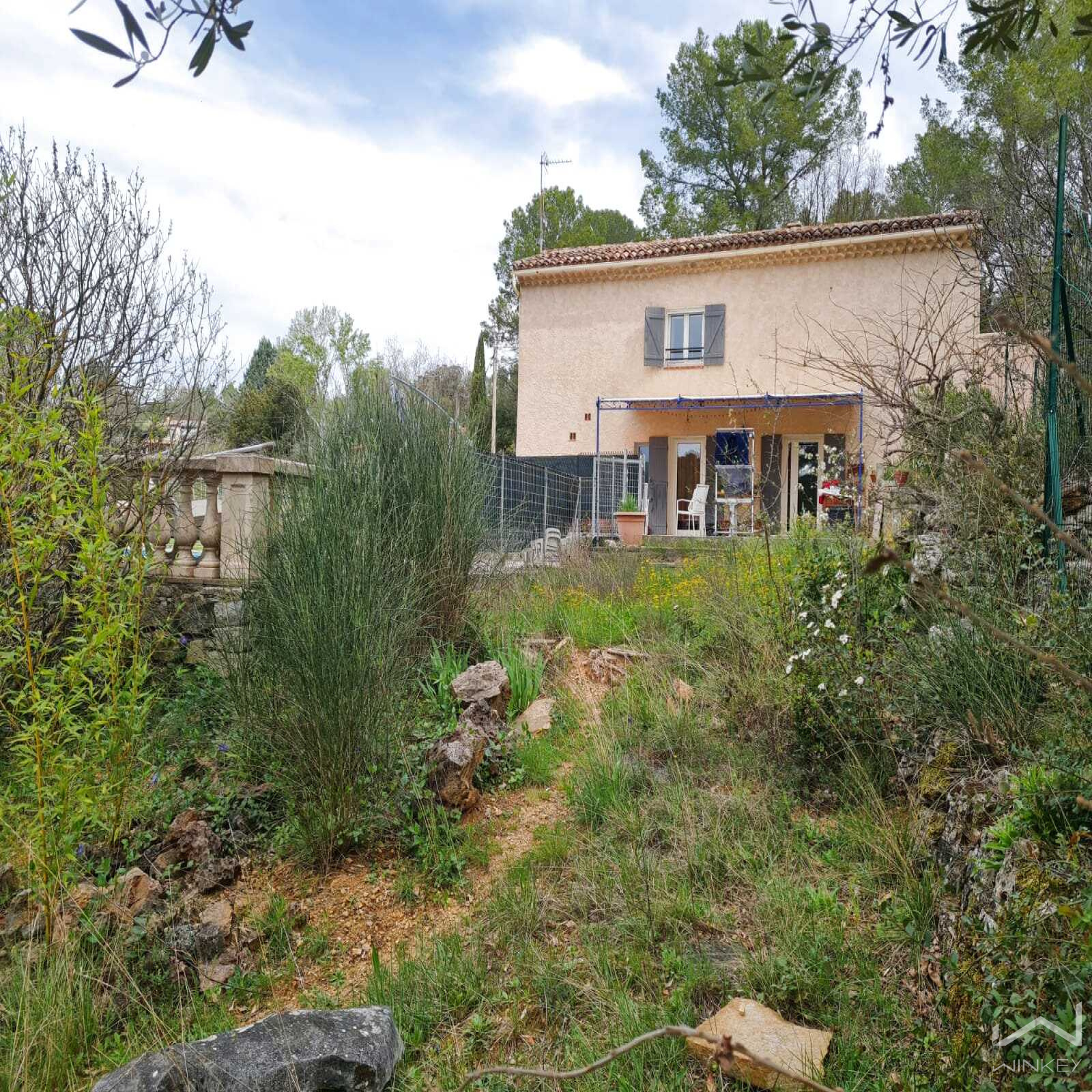 Dans un cadre ensoleillé au calme : maison avec belle terrasse plein sud et également une vue dégagée sur la forêt.