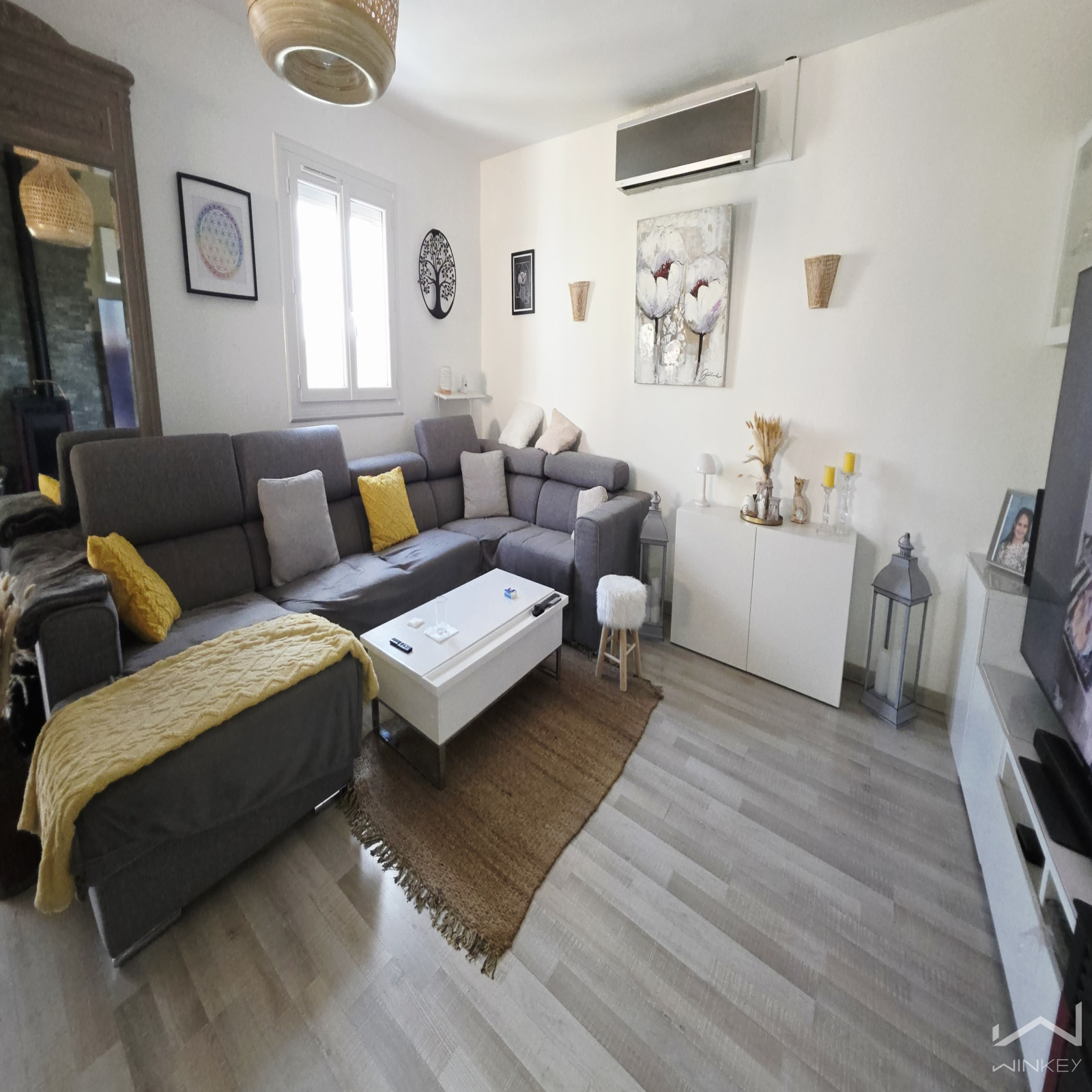 Côté confort, la maison est équipée de double vitrage, de panneaux solaires avec batterie, d’une climatisation réversible et d’un poêle à granulés, alliant modernité et économies d’énergie.