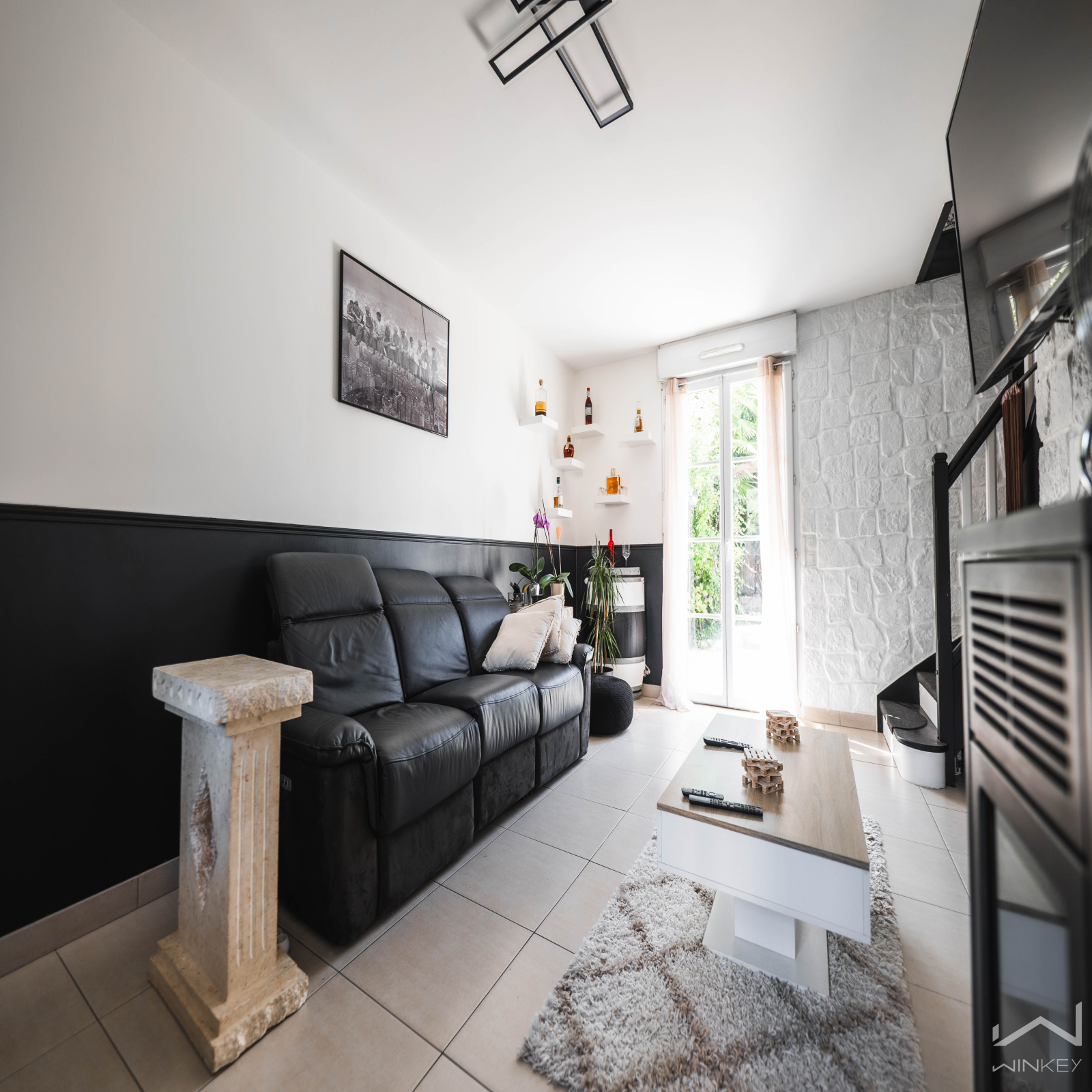 Elle se compose d'un séjour lumineux, agrémenté d'un coin salle à manger chaleureux et d'un poêle à granulés. Le séjour donne directement sur un charmant jardin avec terrasse et abri de jardin, parfait pour vos moments de détente en extérieur.