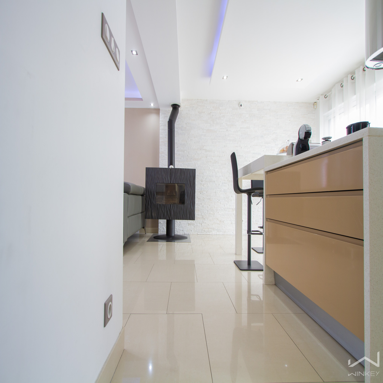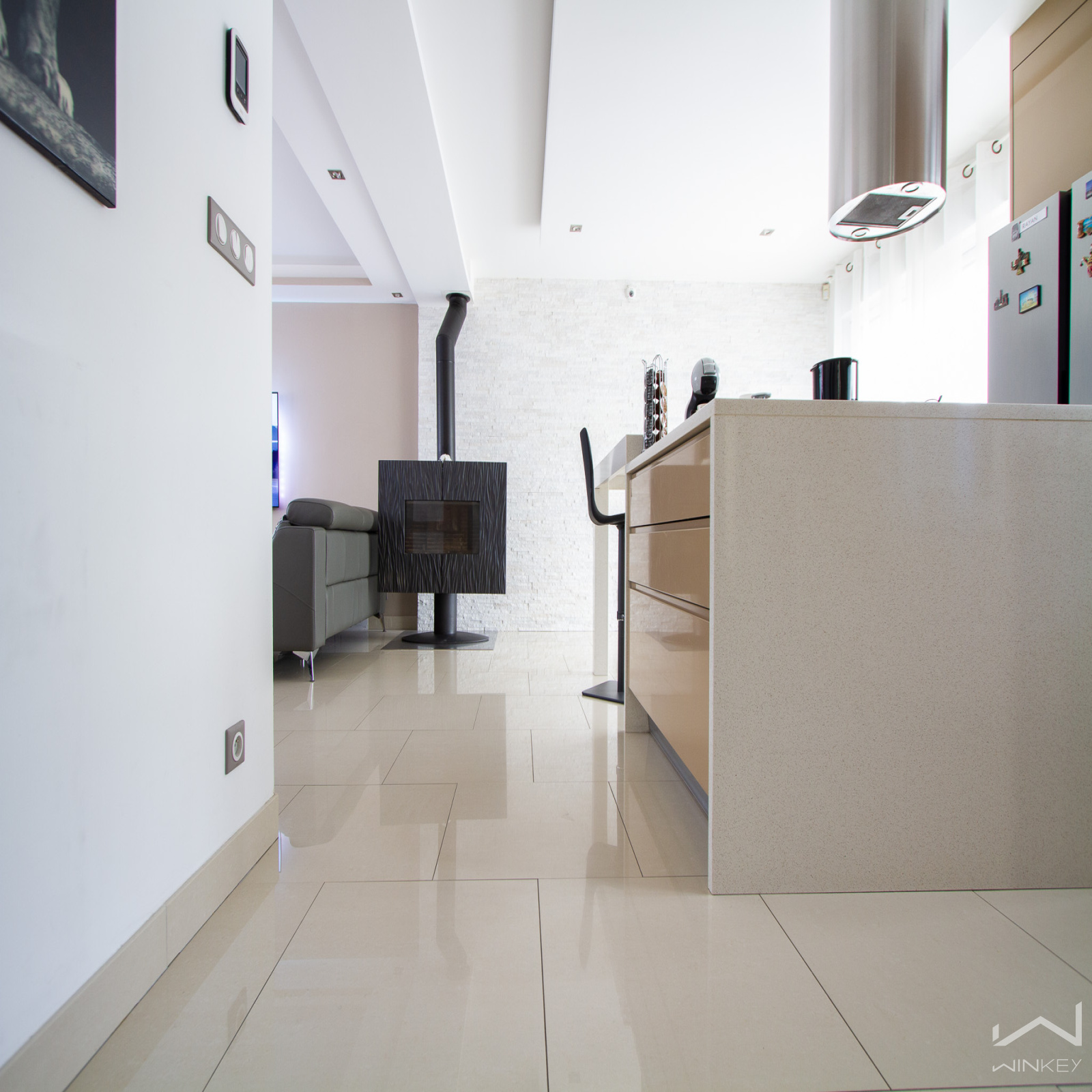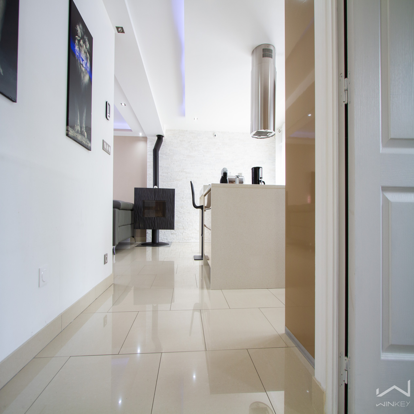 Le rez-de-chaussée s’ouvre sur une entrée lumineuse menant à une vaste pièce de vie agrémentée d’un poêle à bois, un mode de chauffage économique et convivial. La cuisine ouverte, aménagée avec goût, s'intègre parfaitement à l’espace de vie, lequel donne sur une superbe terrasse exposée sud-ouest. Une salle d’eau et des WC complètent ce niveau.