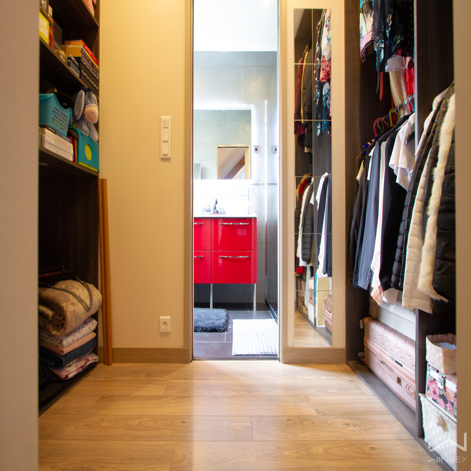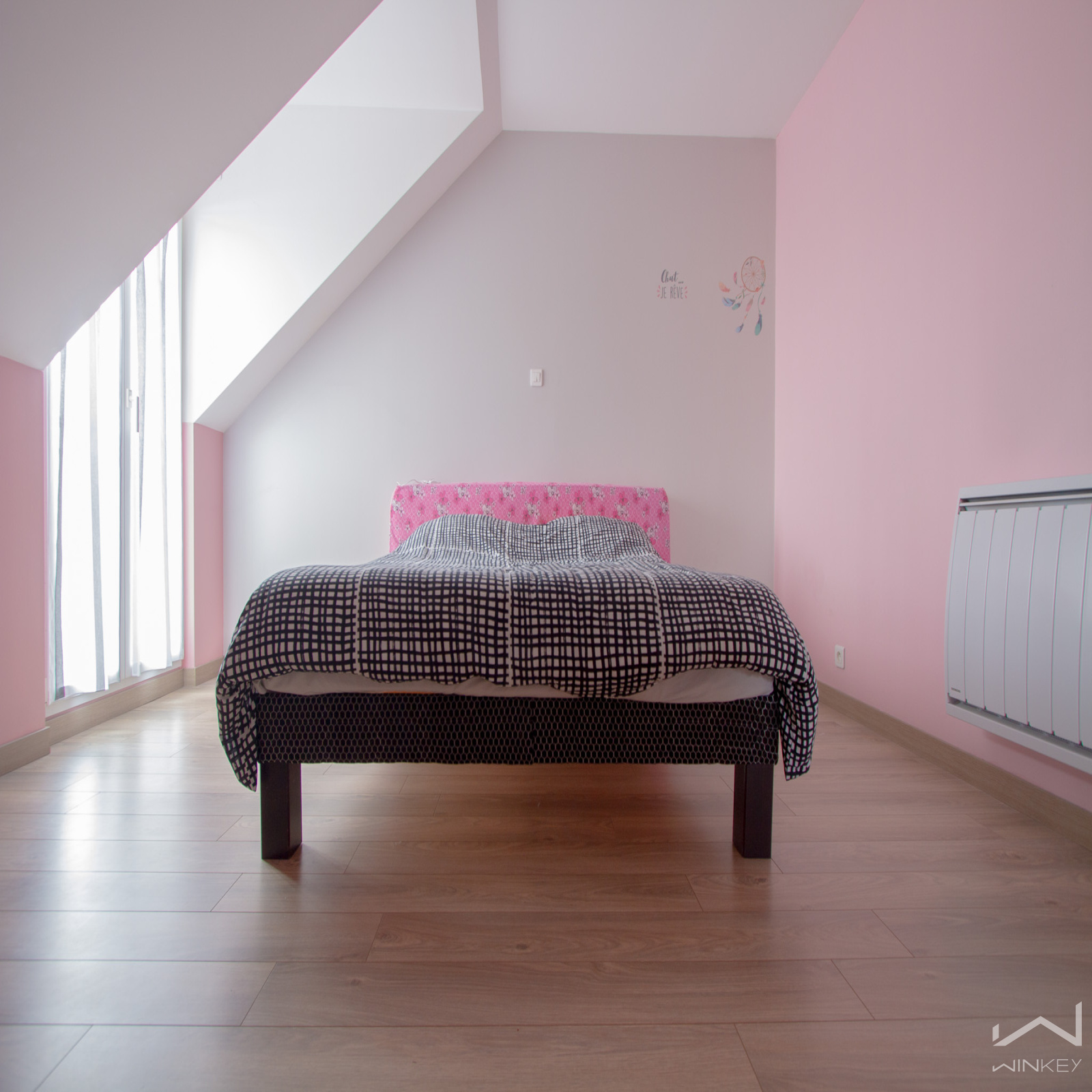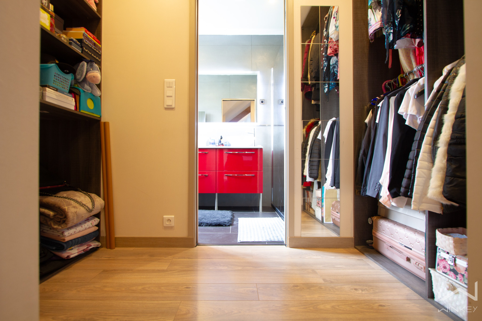 À l’étage, un spacieux dégagement distribue trois grandes chambres, dont une suite parentale avec dressing et salle d’eau privative. Une salle de bain supplémentaire ainsi qu'un WC indépendant y apportent tout le confort nécessaire. Les combles, actuellement aménagés en espace de rangement, abritent également une VMC double flux, garantissant une excellente qualité de l’air intérieur.