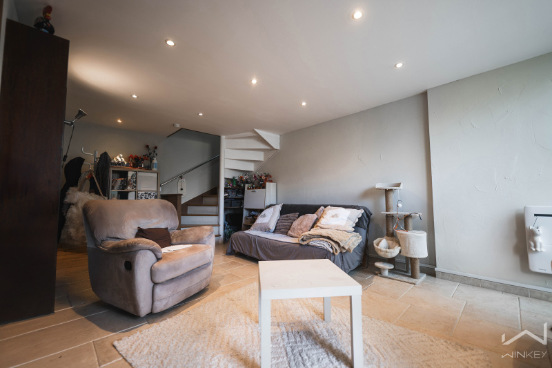 Dès l’entrée, vous serez accueilli par un placard de rangement pratique, suivi d’un garage attenant. Au premier niveau, un bel espace de vie lumineux vous attend avec sa cuisine ouverte, offrant un accès direct à la terrasse et au jardin privatif : idéal pour profiter des beaux jours.