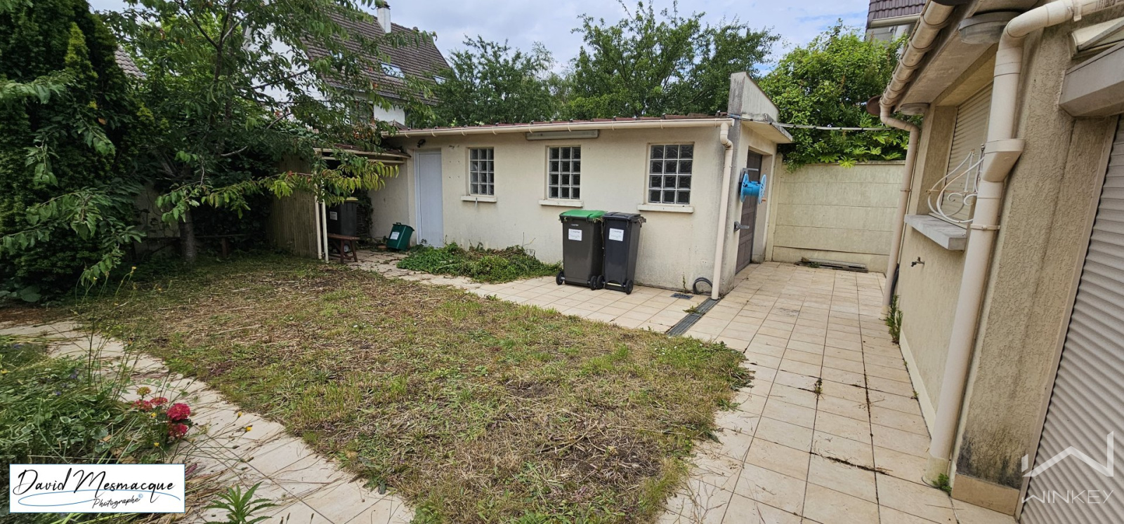 Extérieurs : Jardin de 349 m² séparant la maison de la rue, offrant ainsi une isolation phonique appréciable. Le jardin arrière permet un accès direct aux dépendances et comprend un espace privatif.