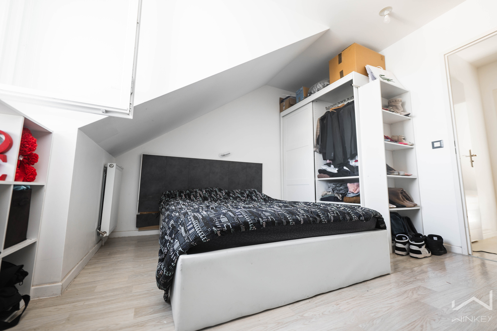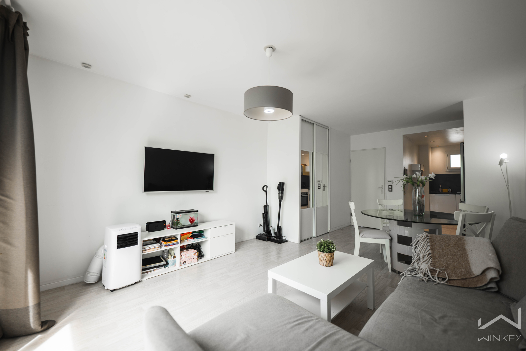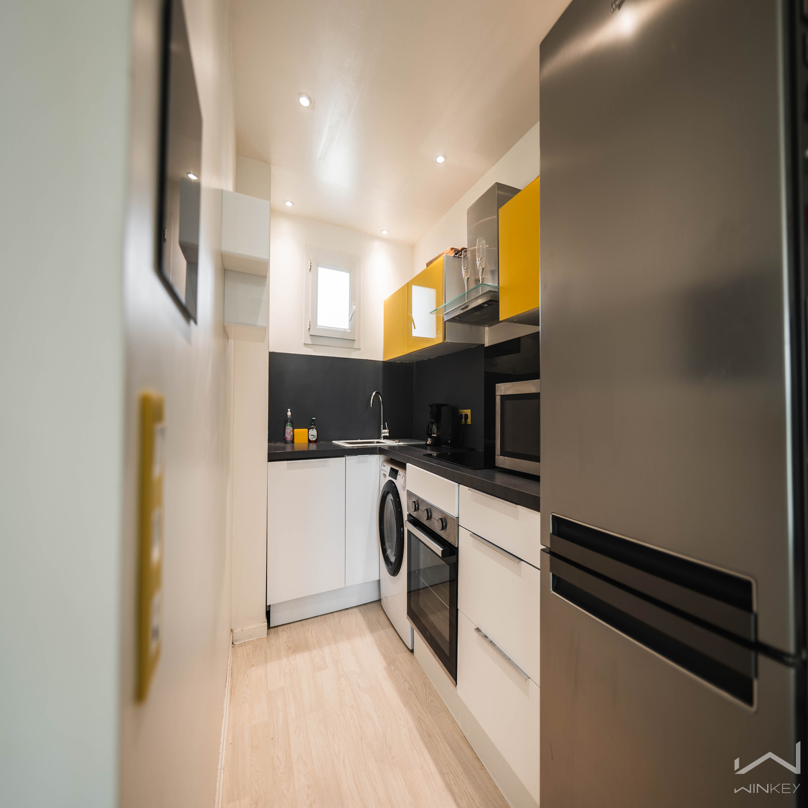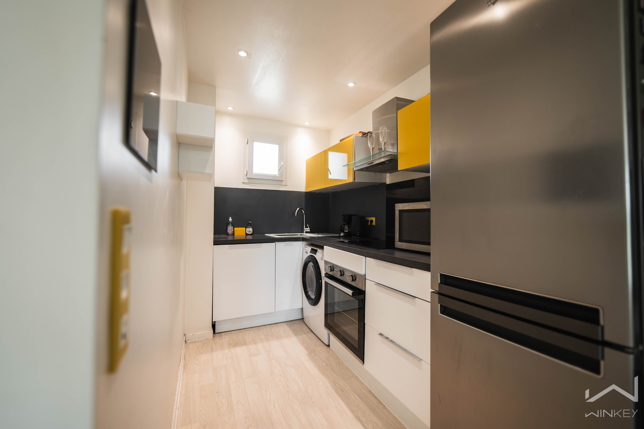 L'appartement se compose, au rez-de-chaussée, d’une entrée avec WC indépendant, d’un séjour lumineux exposé plein sud ouvrant sur une cuisine ouverte et entièrement équipée. Un placard de rangement pratique vient compléter ce niveau.