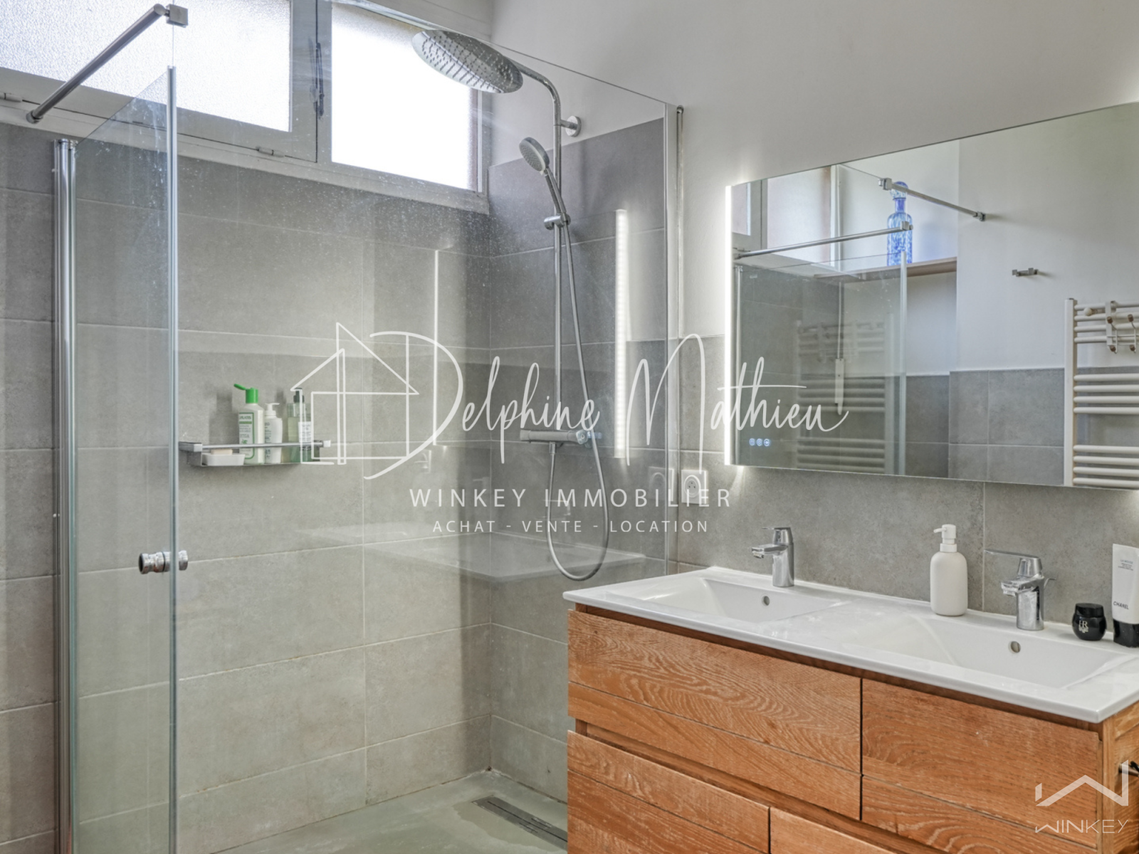 Au sein d'une belle résidence sécurisée avec gardien, ce T5 traversant séduit par sa luminosité, ses volumes généreux et son extérieur paisible. La terrasse et le jardin privatif offrent un véritable havre de paix, parfait pour des moments de détente ou des instants conviviaux en famille. L’agencement intérieur harmonieux comprend un salon-salle à manger avec cuisine semi-ouverte, une suite parentale avec dressing, deux chambres d’enfants et un bureau pouvant être aménagé en chambre, avec un accès direct à l’espace extérieur. Une salle de bains et une salle d’eau viennent compléter cet espace de vie. De nombreux rangements intégrés assurent une organisation optimale. Une cave vient parfaire l’ensemble.