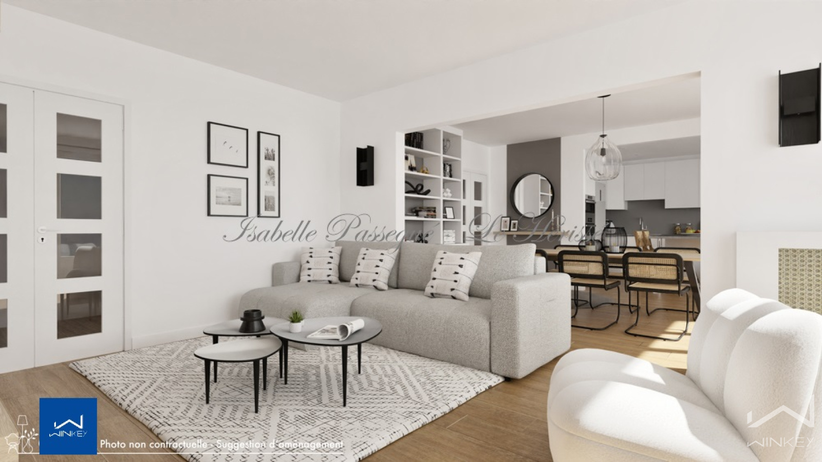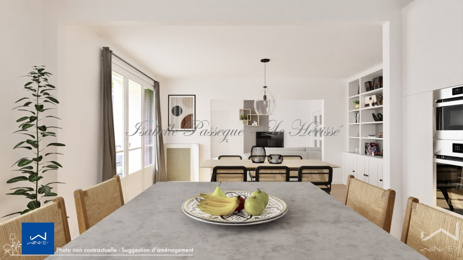 Une agréable entrée dessert un double séjour et une cuisine ouverte avec son îlot central, soit un ESPACE DE VIE de plus de 47 M² !