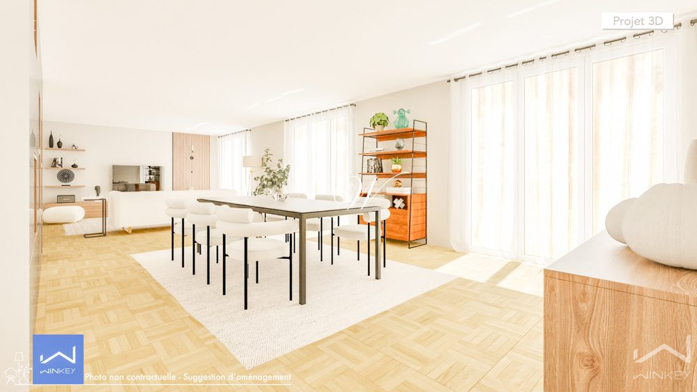Venez découvrir cet appartement fonctionnel et familial de 107 m² avec un balcon de 7 m². Très lumineux, vous serez séduits par sa double exposition et sa vue dégagée sur la nature. Une agréable entrée avec dressing dessert un vaste séjour avec un salon attenant, l'ensemble pouvant former un espace de vie de près de 50 m², idéal pour recevoir ! La cuisine équipée et le cellier vous offre de nombreux rangements. Très pratique au quotidien. Un couloir avec dressings vous mènera à l'espace nuit composé de 3 chambres au calme, d'une salle de bain et d'une 4ème chambre, au choix ! L'appartement vous offre de nombreuses possibilités d'aménagement au gré de vos envies, voir propositions d'aménagement non contractuelles en photos : grande pièce de réception, 4ème chambre, suite parentale. Un potentiel qui n'a d'égal que ses beaux volumes ! Vous ne pourrez demeurer insensible aux multiples avantages de ce bien : parquet, fenêtres en double vitrage neuves, rangements et situé à moins de 5 minutes des commerces, des transports et d'unsquare pour les petits et les grands ! Alors, appelez-moi au 06 35 93 58 04 Contactez votre conseiller en immobilier WINKEY pour une visite au 06 35 93 58 04 Nicholas TROESTER mandataire immobilier titulaire de la carte professionnelle n°CPI95012018000035005