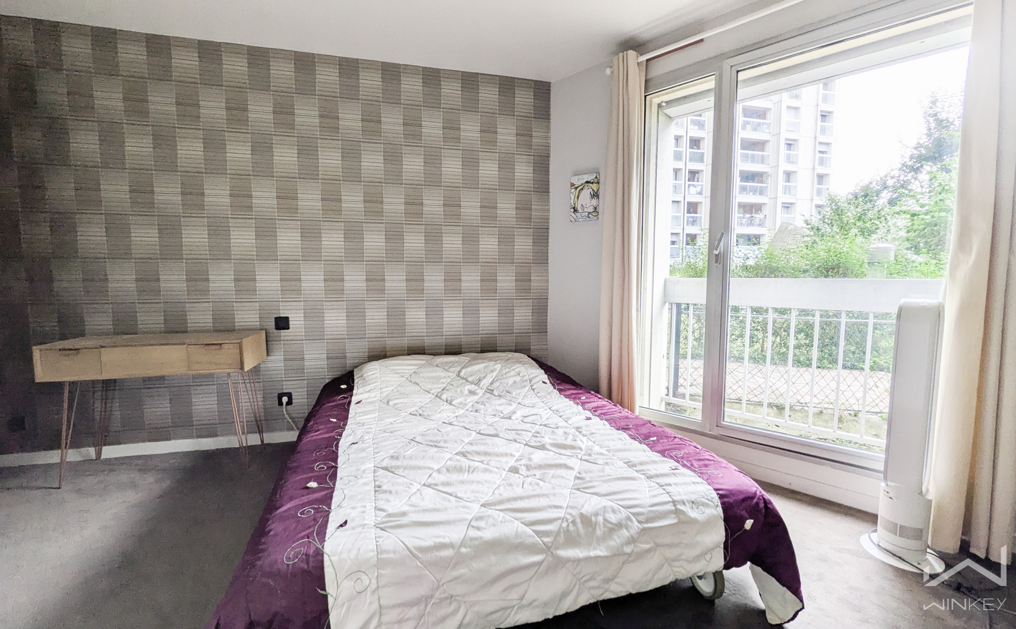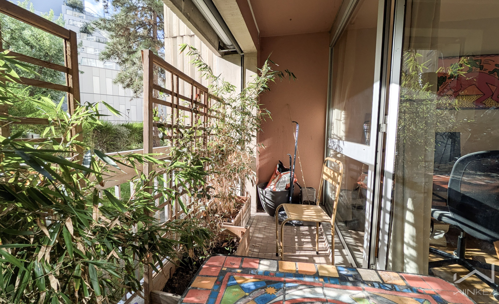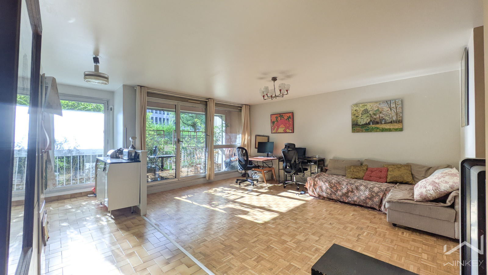 En rez-de-dalle d’une résidence bien tenue, agréable 2 pièces de 56,29 m² (Loi Carrez) offrant un séjour/cuisine d’environ 35 m² prolongé par une loggia de 4,91 m².