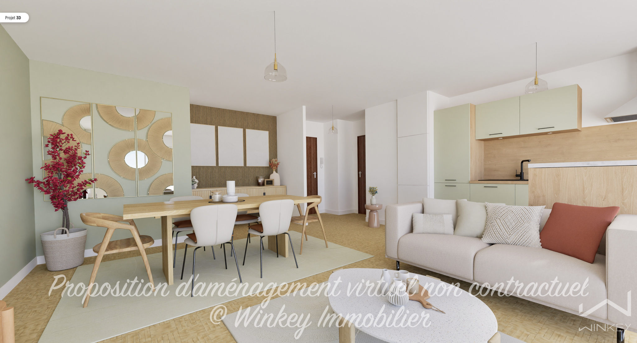 Bel espace de vie, plan sans perte d’espace, loggia, cave et parking.