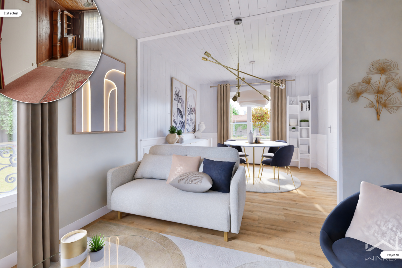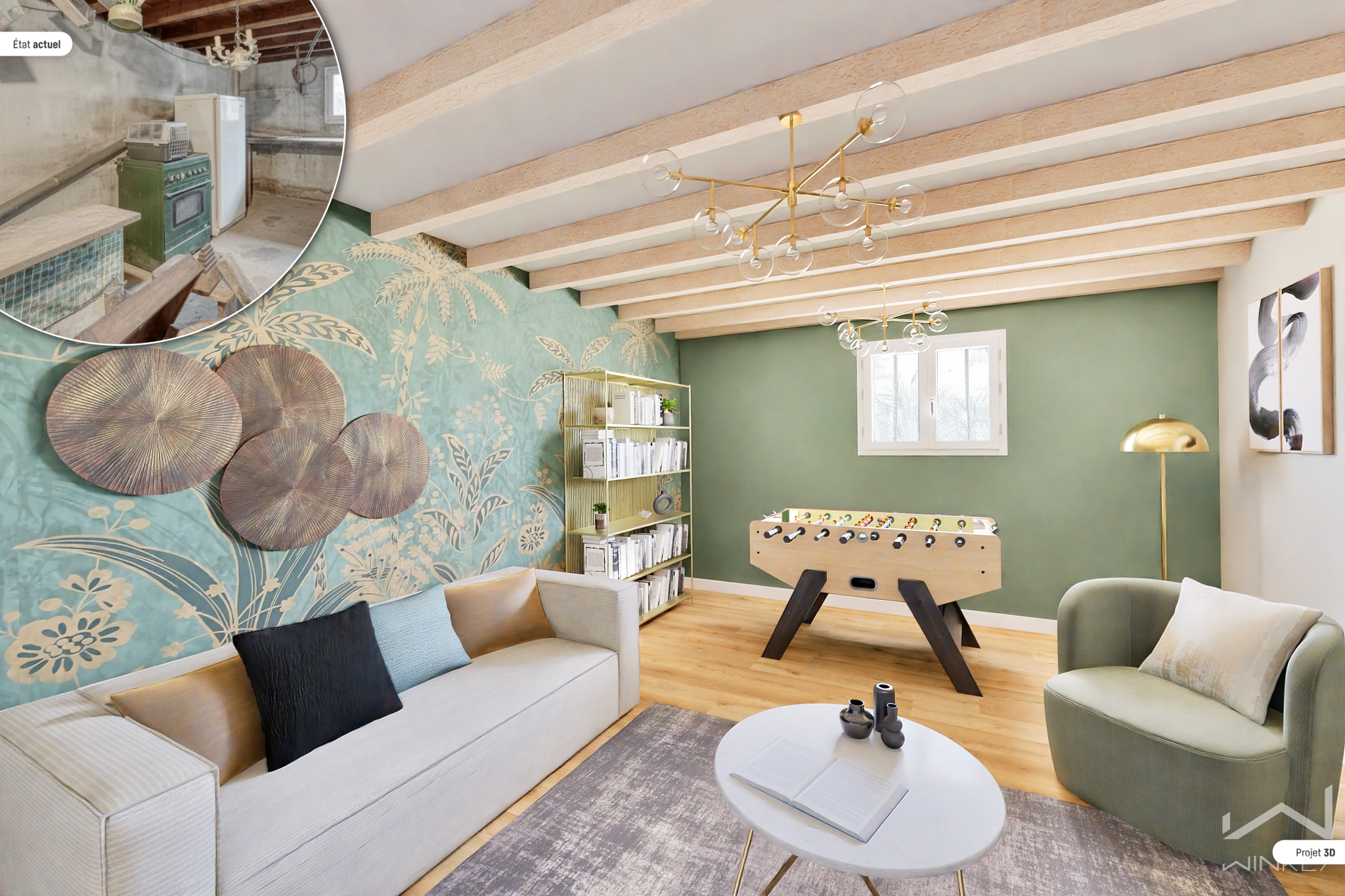 Organisée sur trois niveaux, elle offre aujourd’hui : un rez‑de‑jardin dédié aux espaces techniques (54m²), un 1er étage comprenant entrée, séjour, cuisine, chambre et WC (54m²) et des combles exploitables selon projet (28m²).