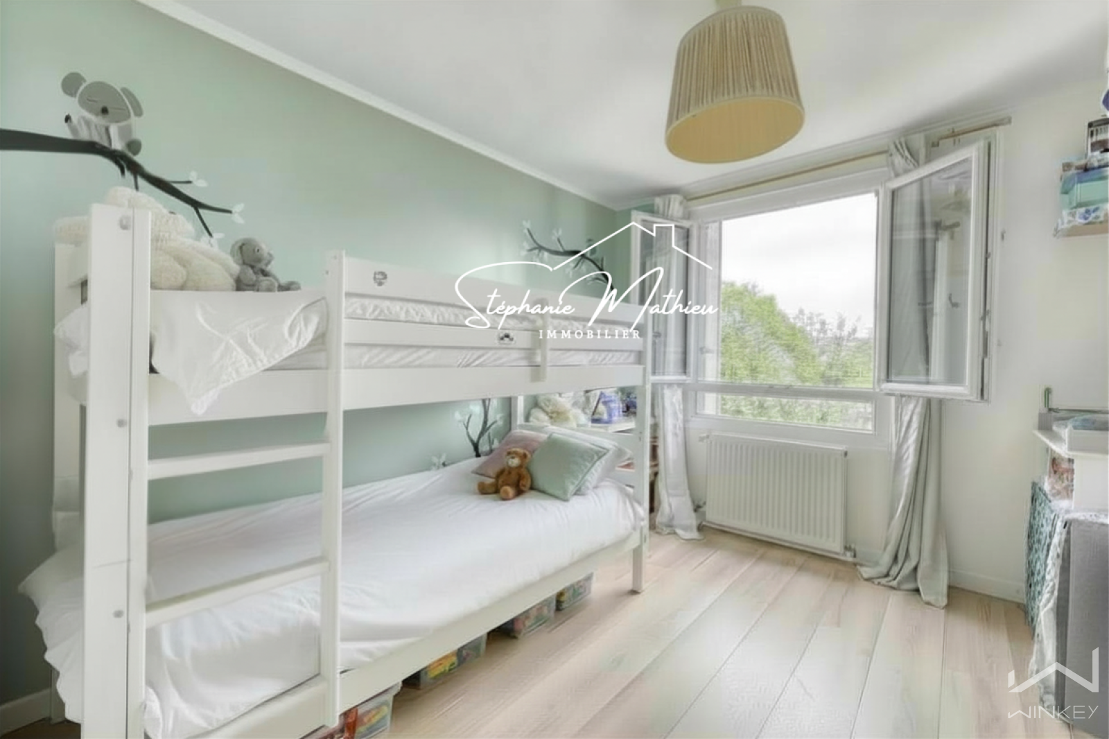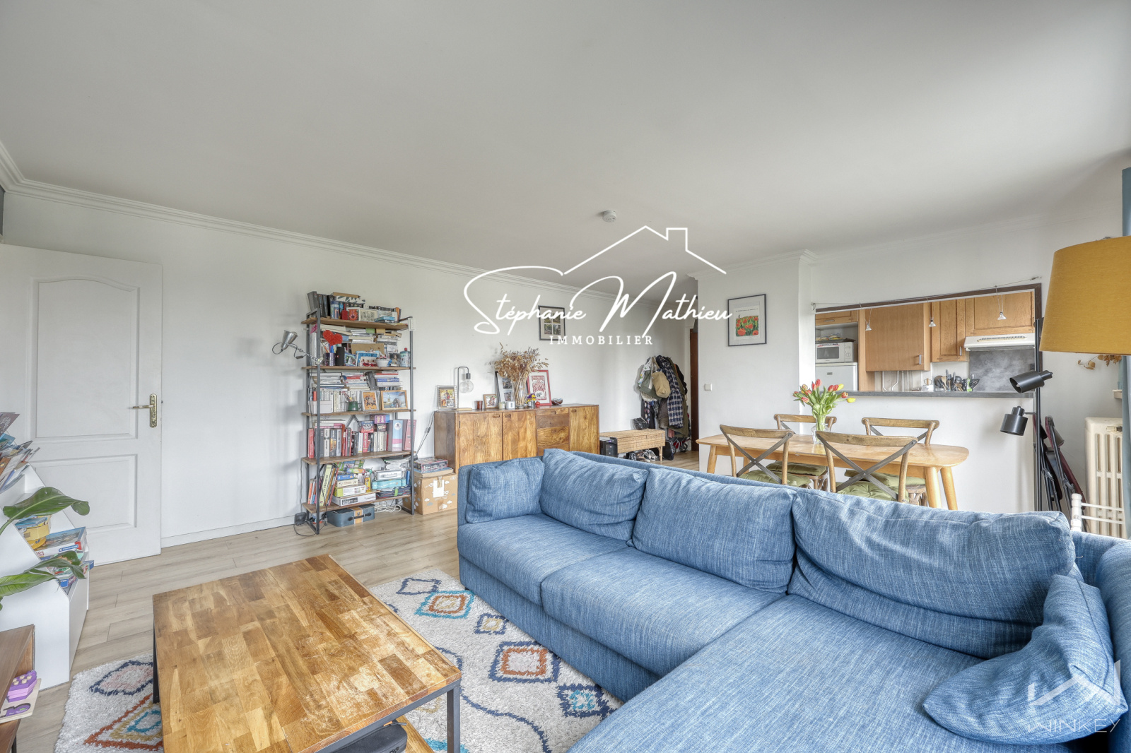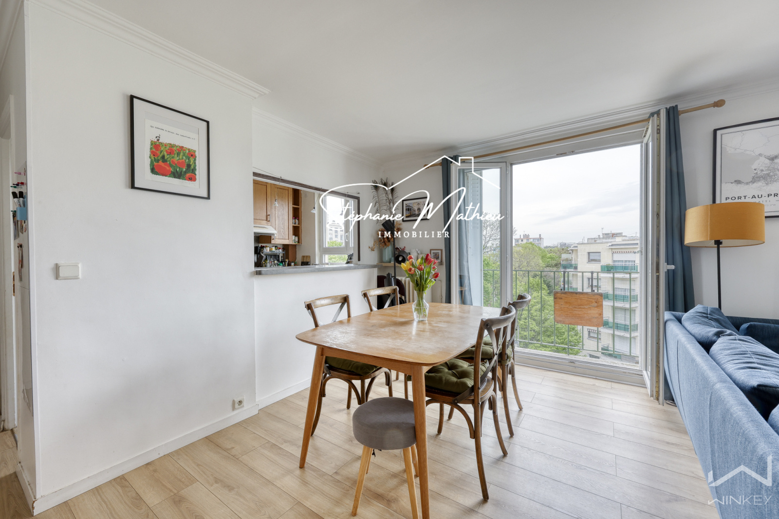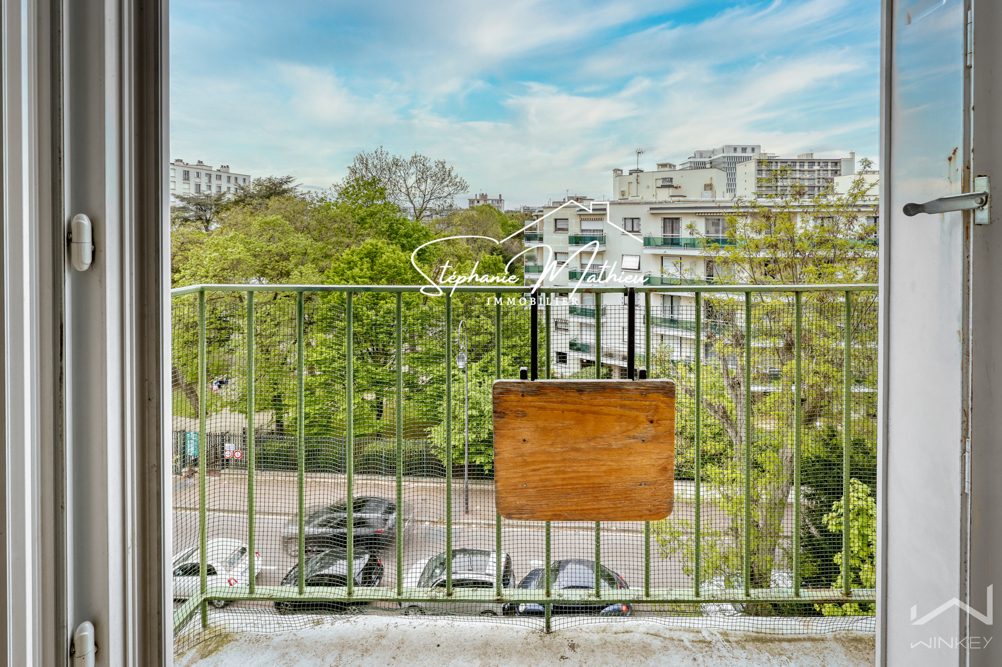Il se compose d’une cuisine ouverte sur un séjour / salle à manger spacieux et lumineux communiquant sur un balconnet côté parc (avec possibilité d’aménager une 3ᵉ chambre ou un bureau), de deux chambres, d’une salle de bains avec baignoire et WCs.